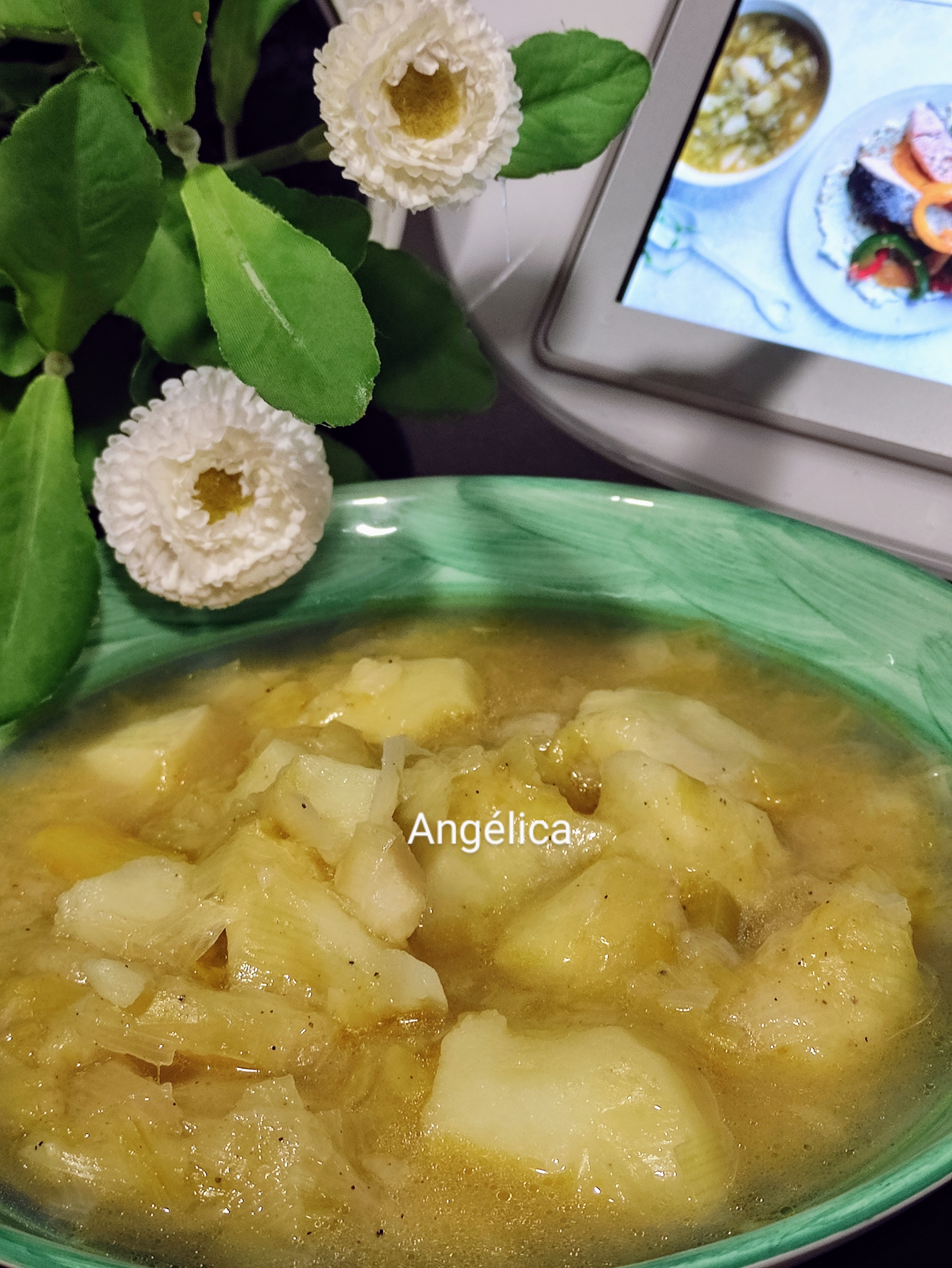 Patatas guisadas, puerros, lubina con 3 pimientos y salsa de aguacate con thermomix