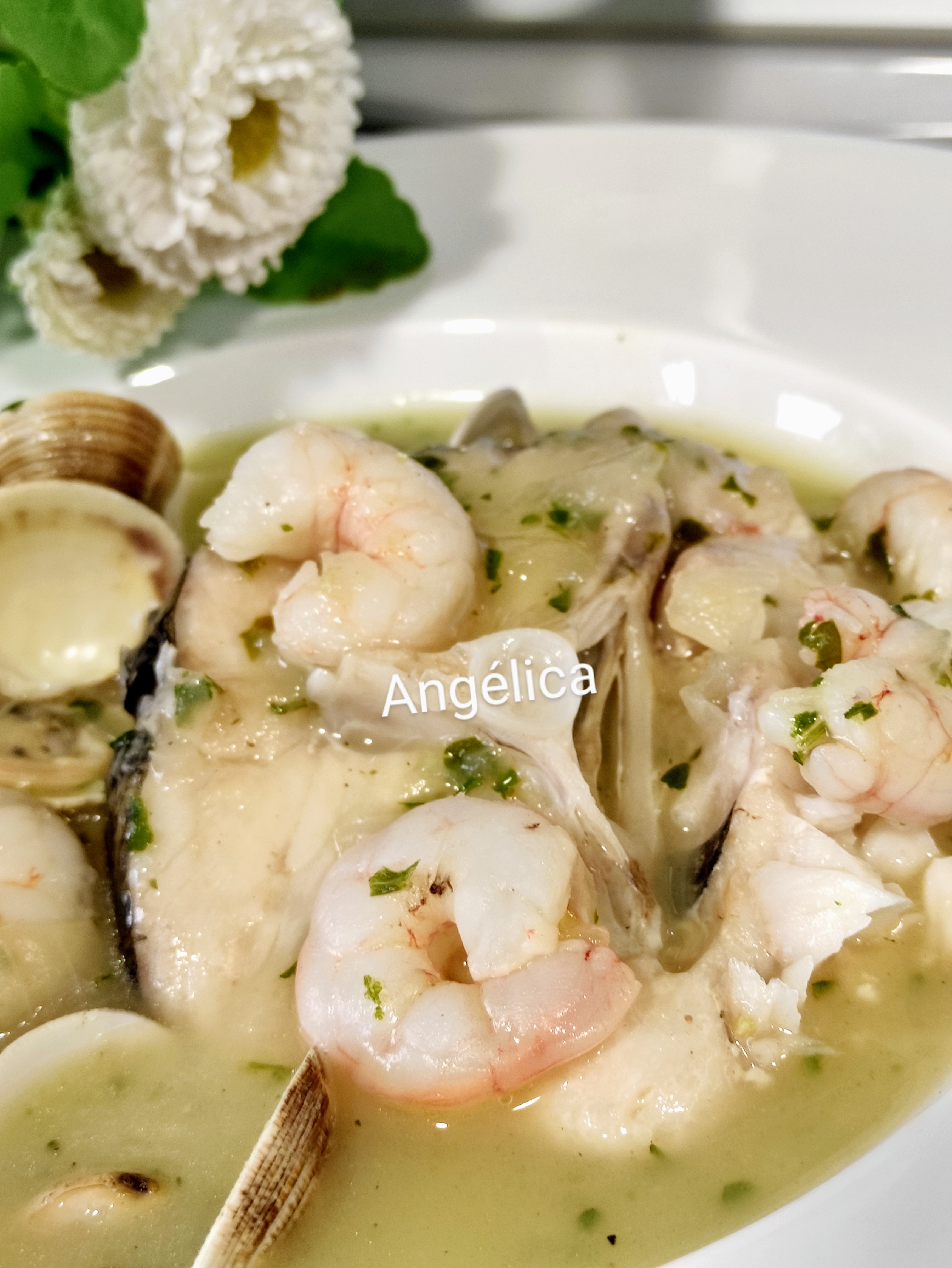 MERLUZA EN SALSA VERDE CON GAMBAS Y CHIRLAS CON THERMOMIX