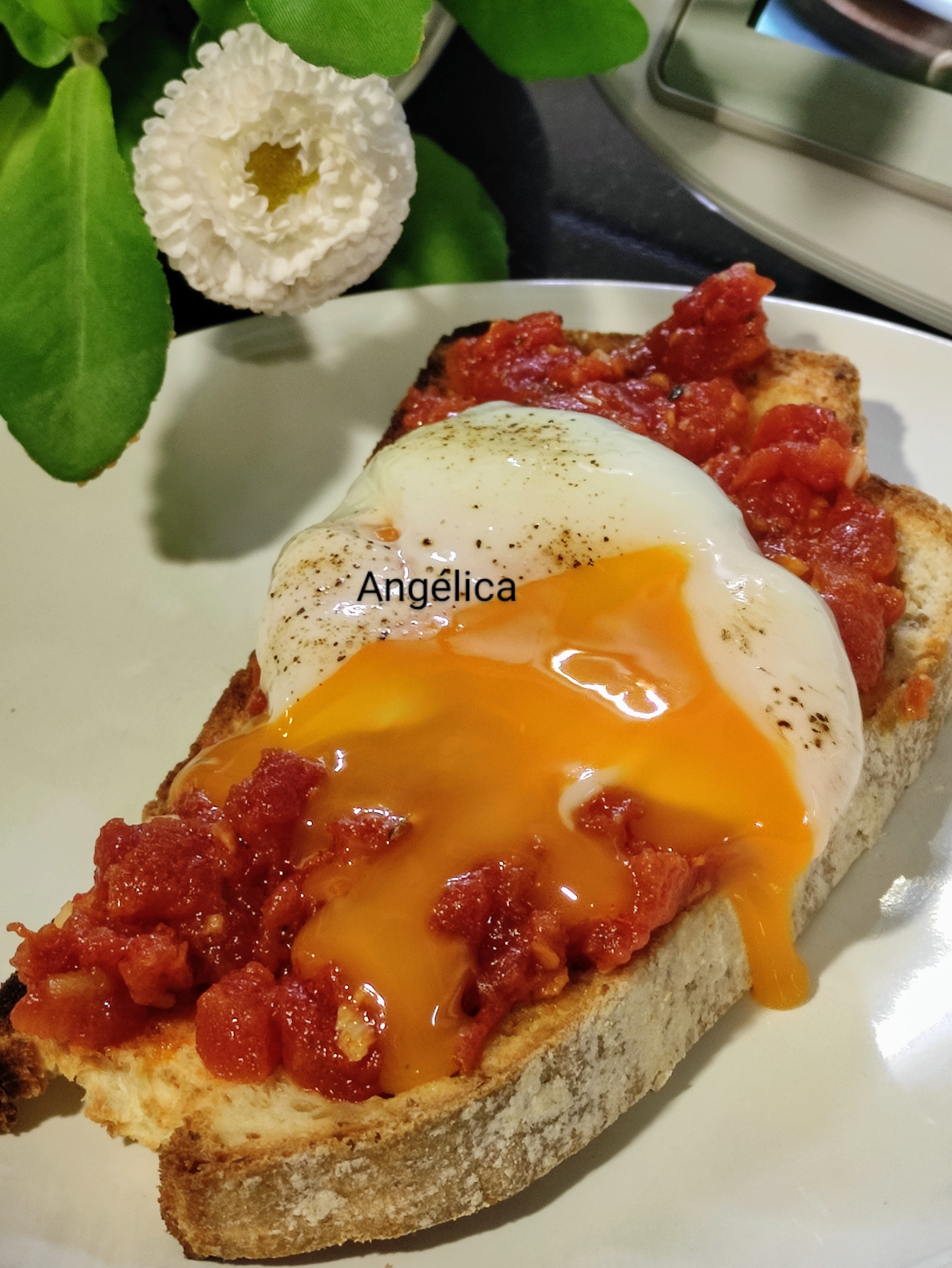 Bruschetta de tomate con huevo a baja temperatura y pan sin gluten con thermomix
