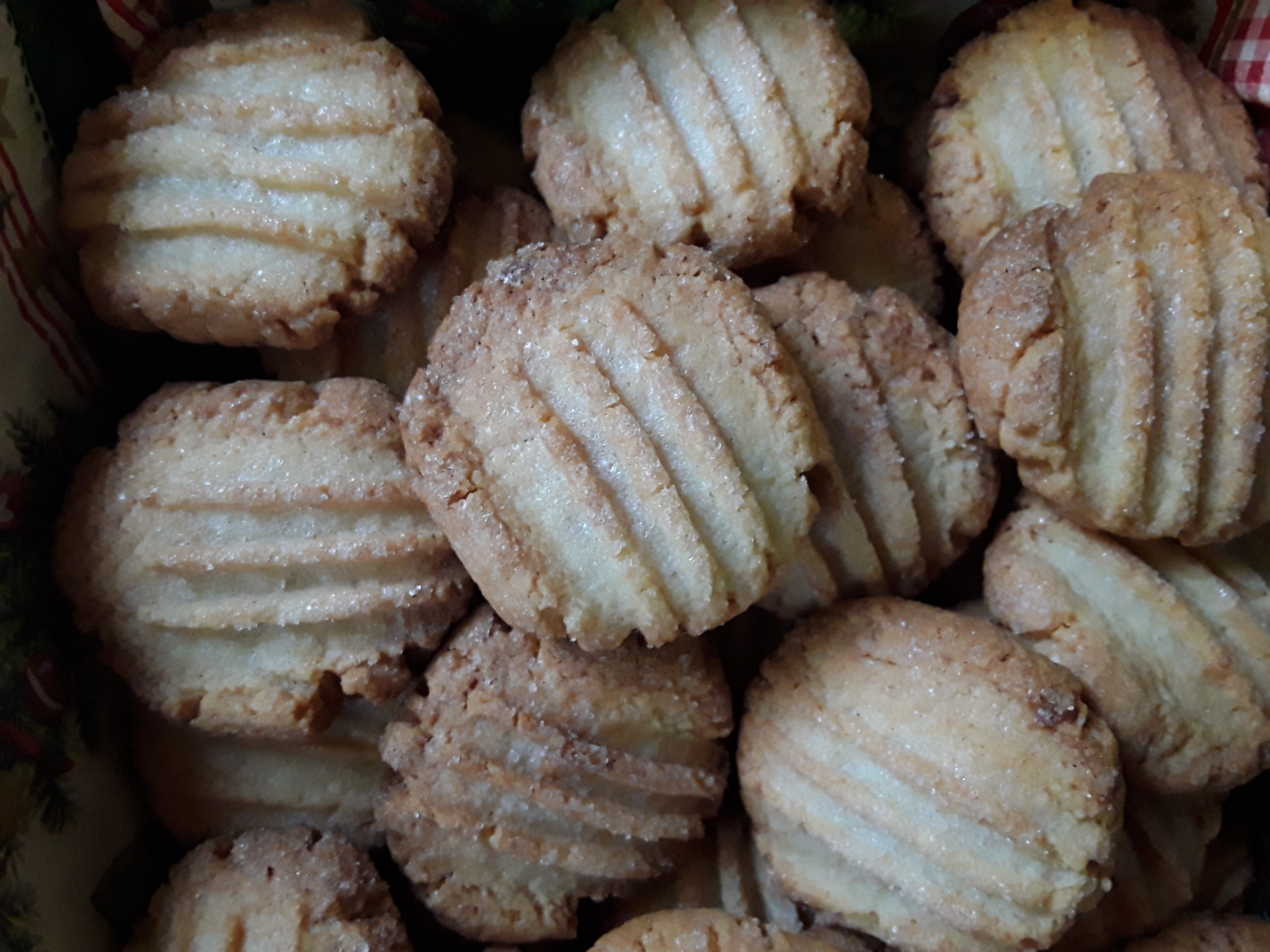 3. Vierta un poco de azúcar en un plato. Coja una cucharada de masa ( 15 gr ) , haga una bola y sumerga la mitad de la bola en el azúcar preparada, ponga la parte de arriba del azúcar hacia arriba y la aplasta con un tenedor para darle forma redonda de galleta. Asi sucesivamente con la masa restante y meta en el horno 15 minutos (180° ) . Deje enfriar sobre una rejilla antes de servir.