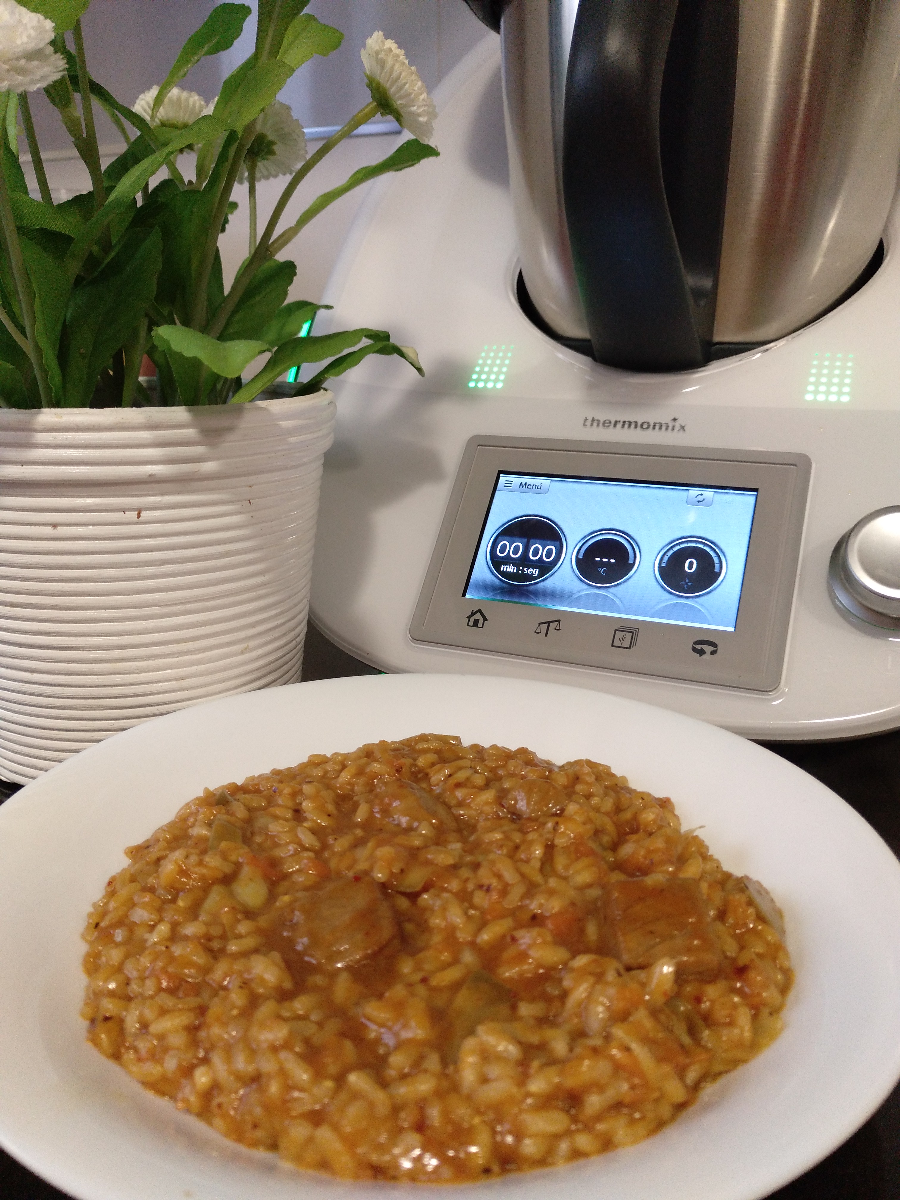 Los arroces salen espectaculares en el thermomix. Los puedes hacer de varias maneras, secos, melosos, caldositos... A mi me gustan de todas las maneras.