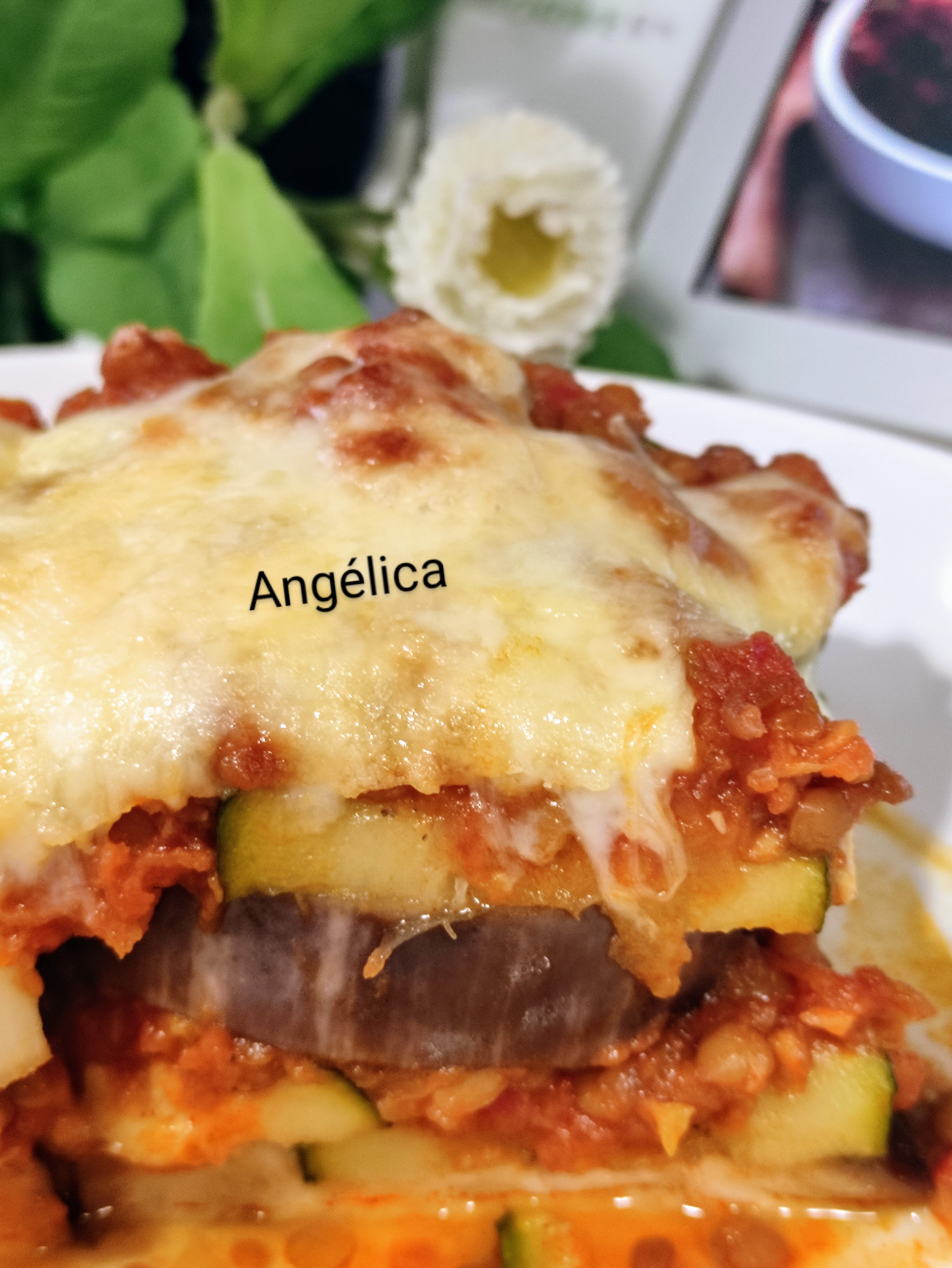 Lasaña calabacín, berenjena y lentejas con thermomix