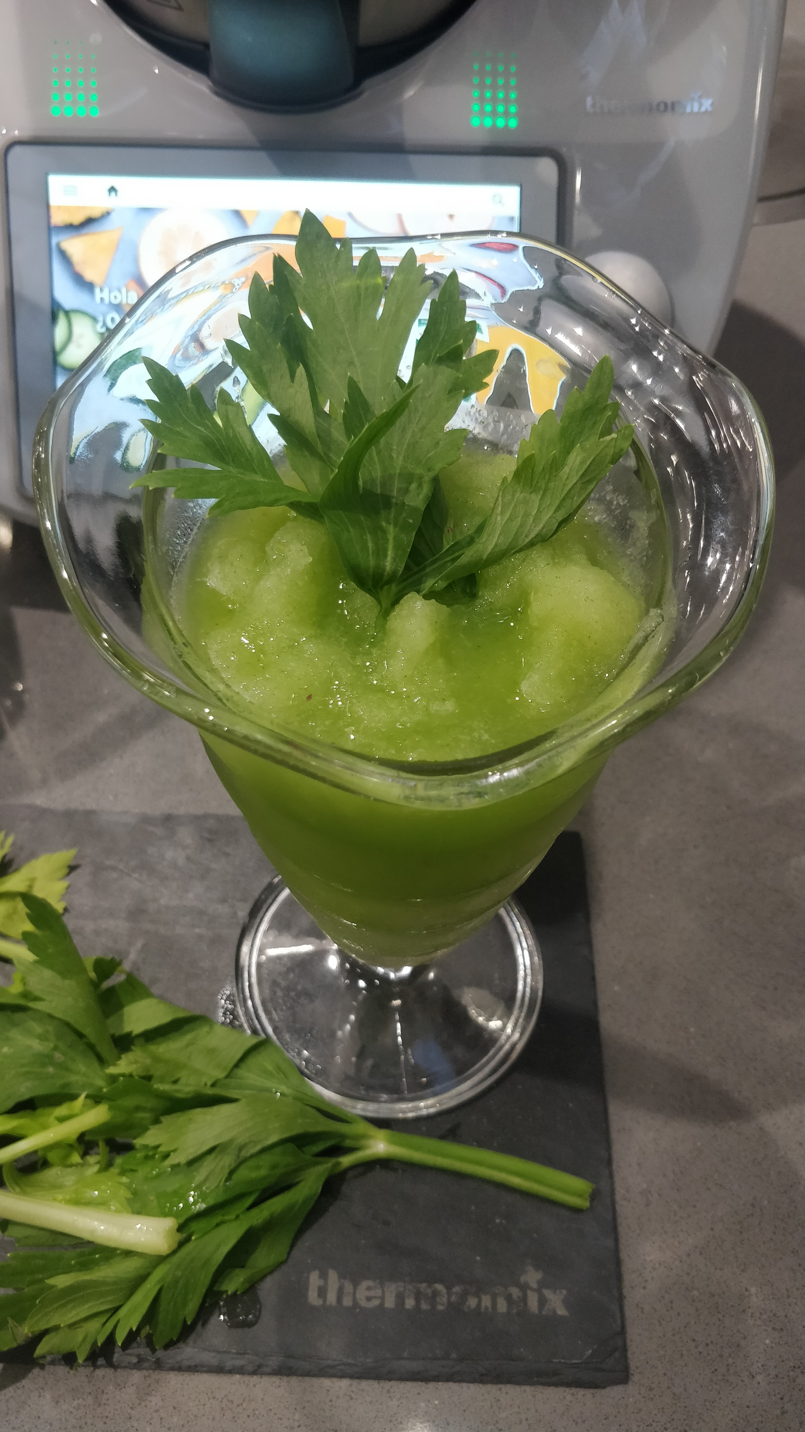 Muy buenas a todos, hoy quiero compartir con vosotros una receta que me sorprendió mucho . Ya era agente comercial cuando hice por primera vez esta receta , y os aseguro que quedé maravillada. Estamos acostumbrados a los sorbete de todo tipo de frutas, frutos....pero este de APIO me entusiasmó . Primero por su sabor ,que fácil era disfrazar el sabor del APIO , y después porque que manera más sana de refrescarnos con algo que podía aportarnos tantos beneficios saludables . Os animáis a hacerlo ? Os aseguro que os vais a sorprender .