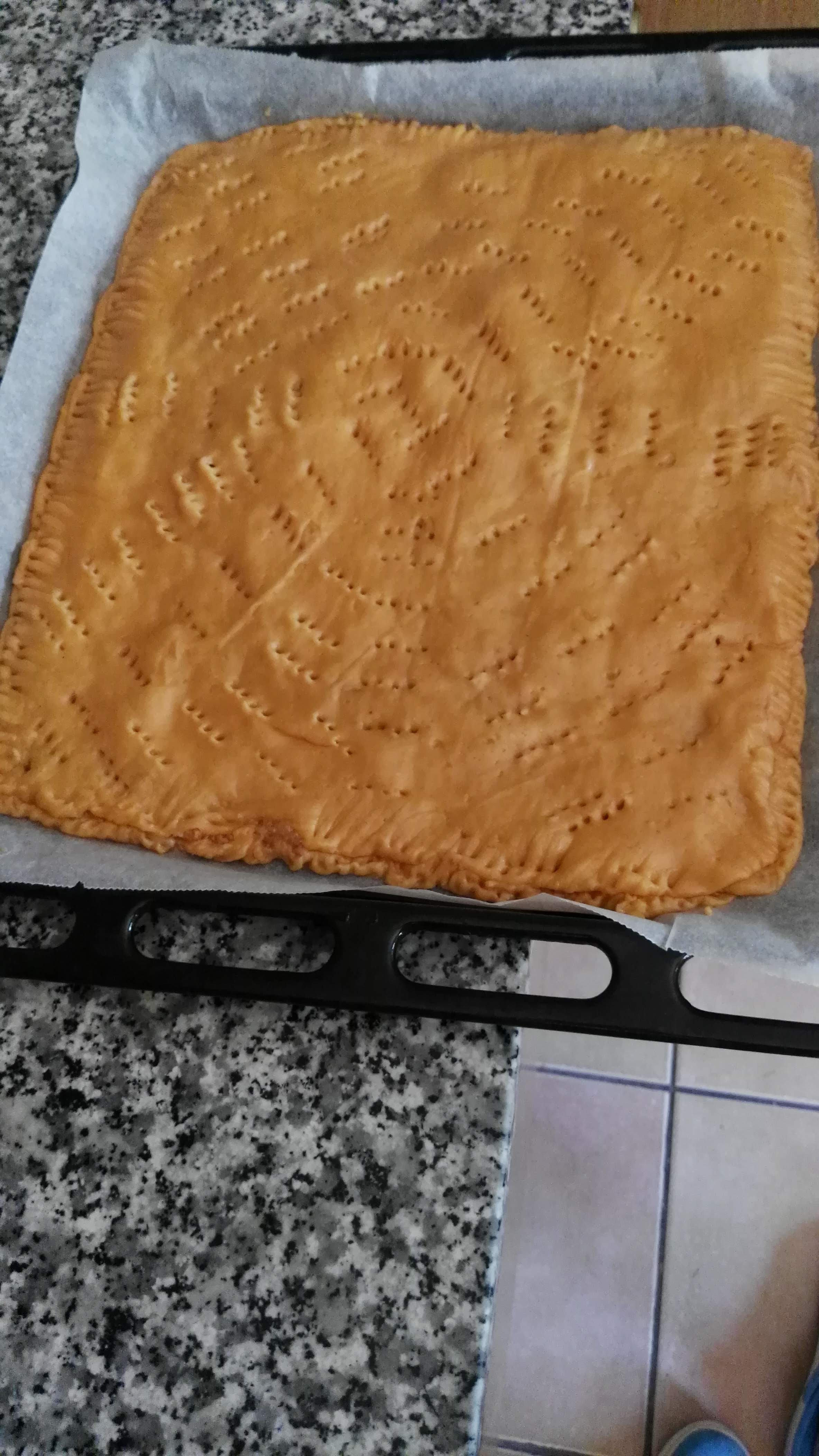 Pincelarla con un huevo batido .Hornear 25/30 minutos 180 grados horno precalentado.