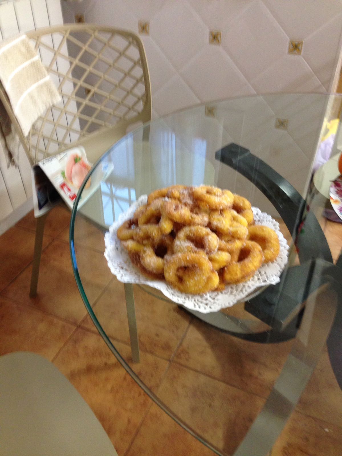 5. Con la ayuda de 2 cucharas soperas o una buñuelera ,freír en abundante aceite bien caliente hasta que estén bien dorados. Retirar y colocar sobre papel absorbente para retirar el exceso de aceite y a continuación pasar por azúcar y canela.