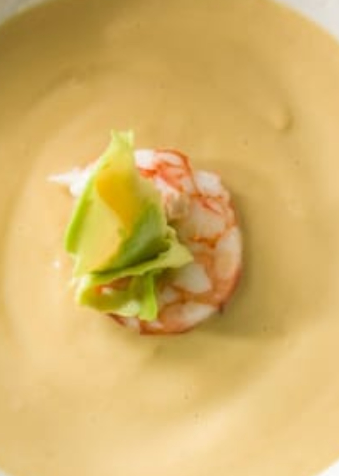 Vichyssoise de aguacate con gambones