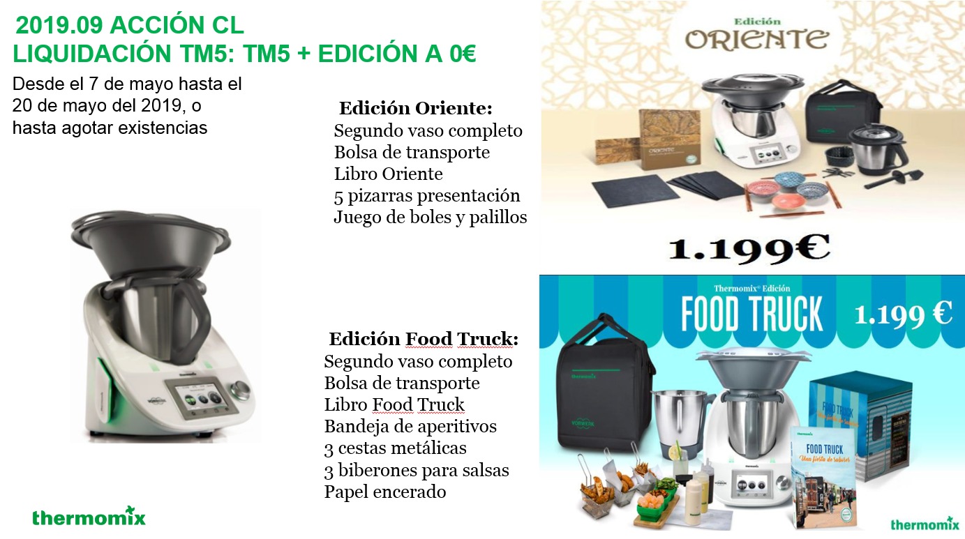 hasta fin de existencias al comprar tu thermomix tm5,de regalo el pack de food trak o oriente con doble vaso mas bolsa y accesorios por el mismo precio.