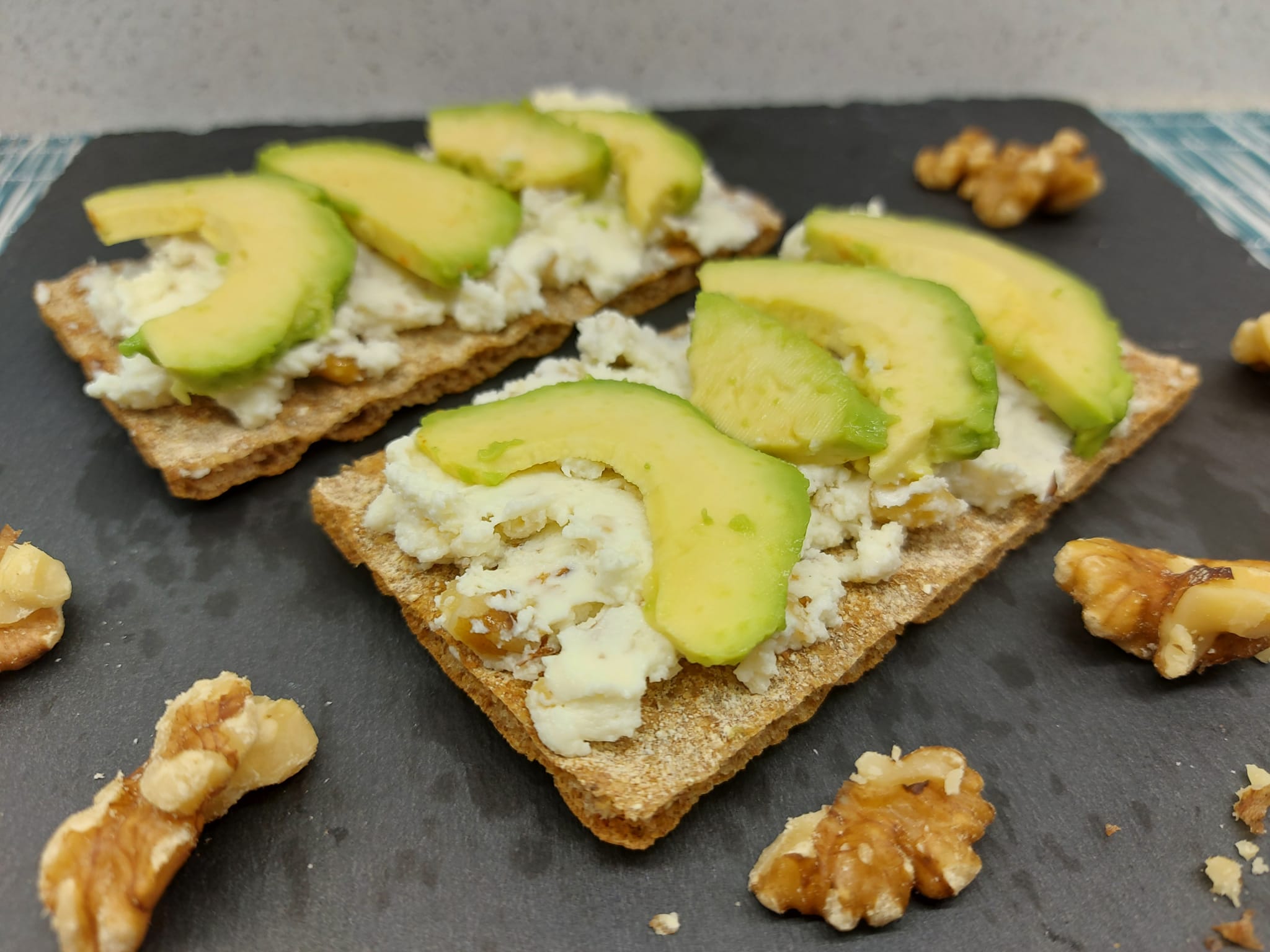 TOSTADAS CON AGUACATE Y CREMA DE QUESO FRESCO CON NUECES