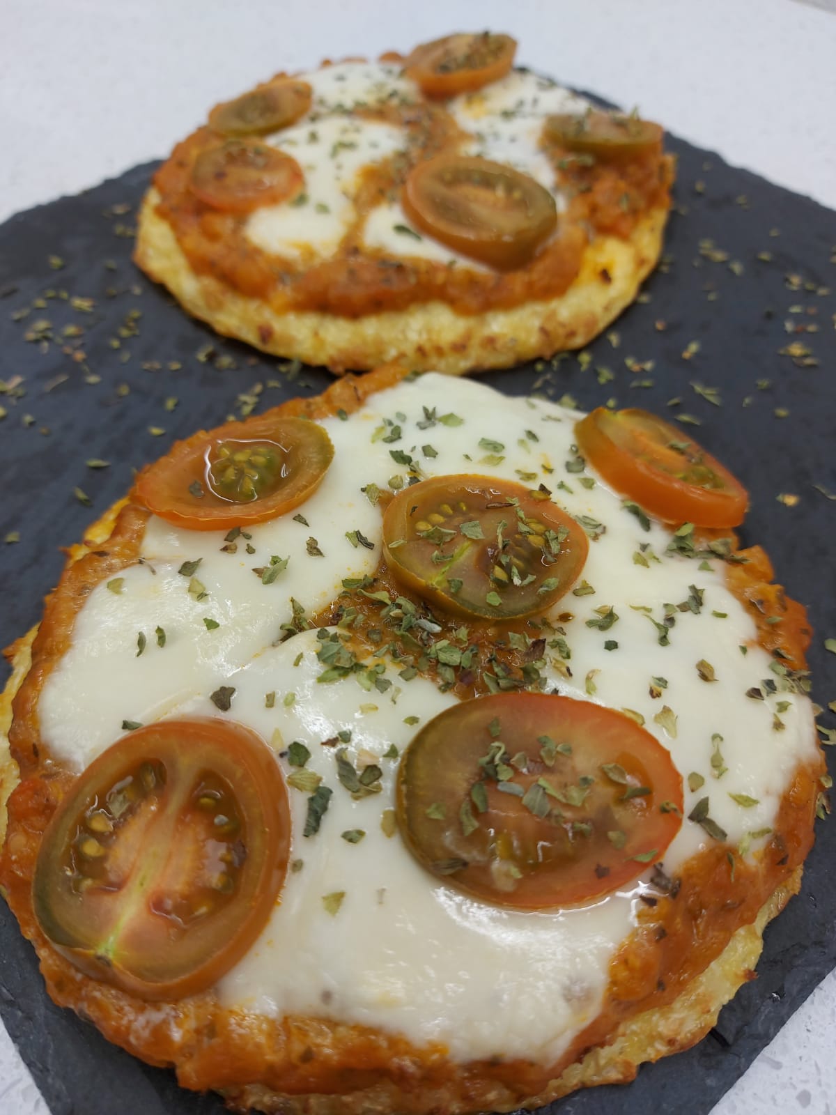MINI PIZZAS DE COLIFLOR Y QUESO CON TOMATE (SIN GLUTEN)