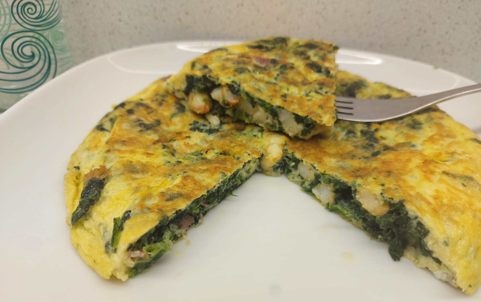 TORTILLA DE ESPINACAS,JAMÓN Y GAMBAS