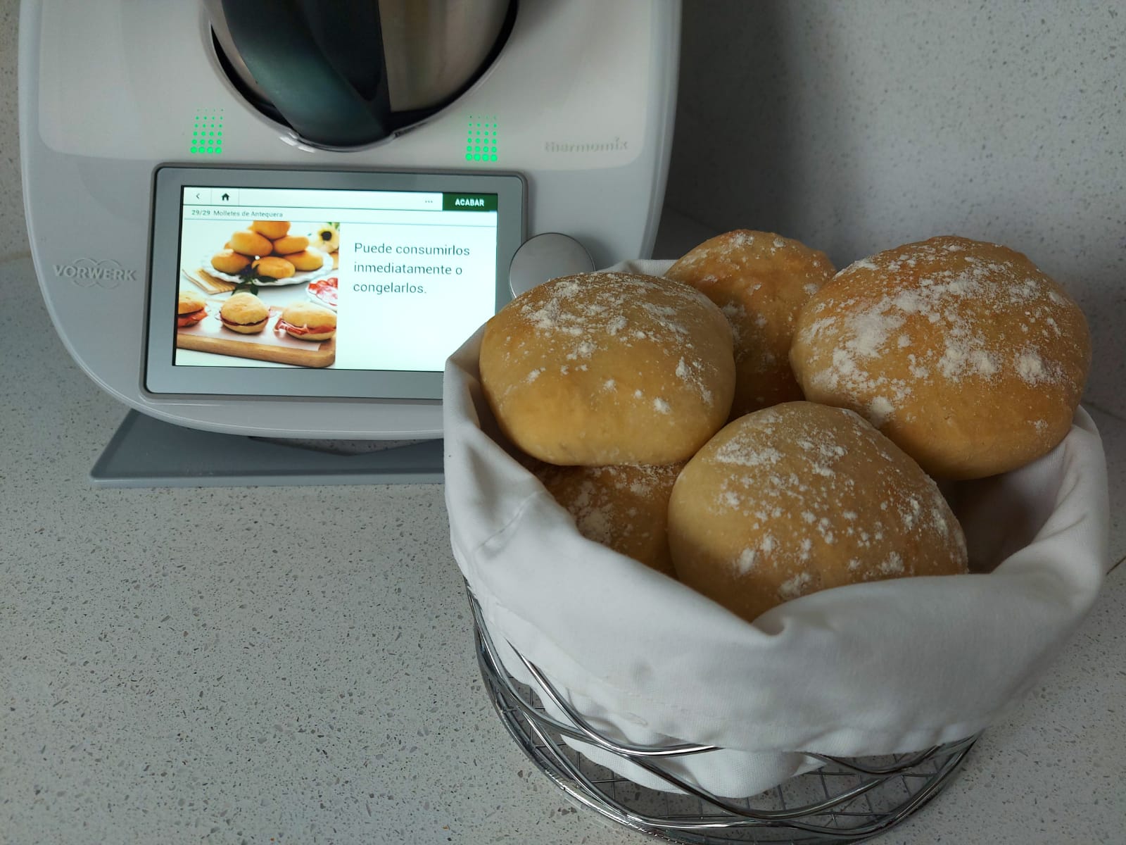 Espolvoree los molletes con un poco de harina, baje la temperatura del horno a 180°C y hornee cada bandeja durante 15 minutos (los molletes no deben dorarse). Retire del horno y deje enfriar sobre una rejilla (aprox. 30 minutos). Puede consumirlos inmediatamente o congelarlos.