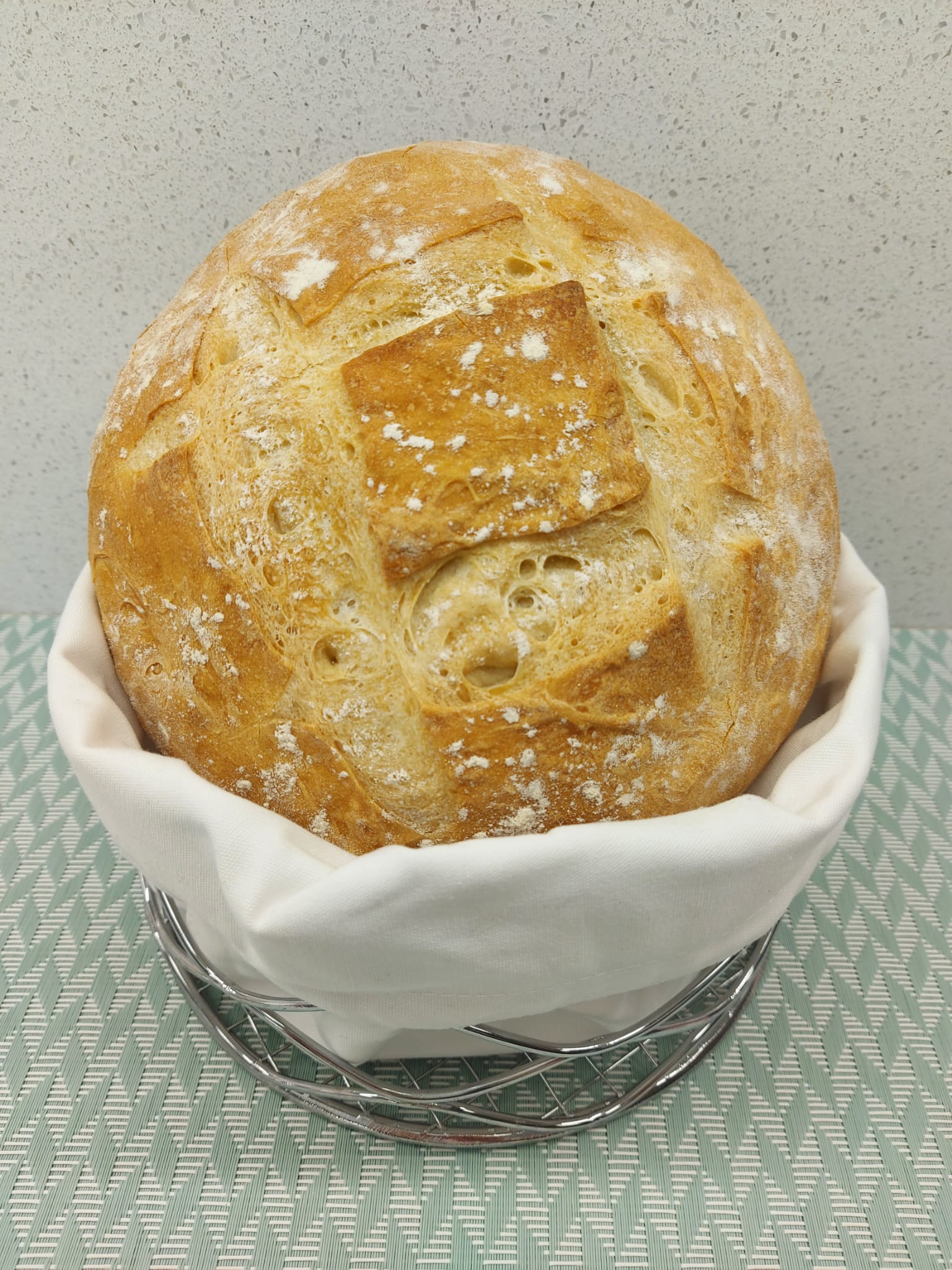 Para que la corteza salga más crujiente, pulverizar el pan con un poco de agua y si lo queréis más rústico, espolvorear con harina antes de hornear.