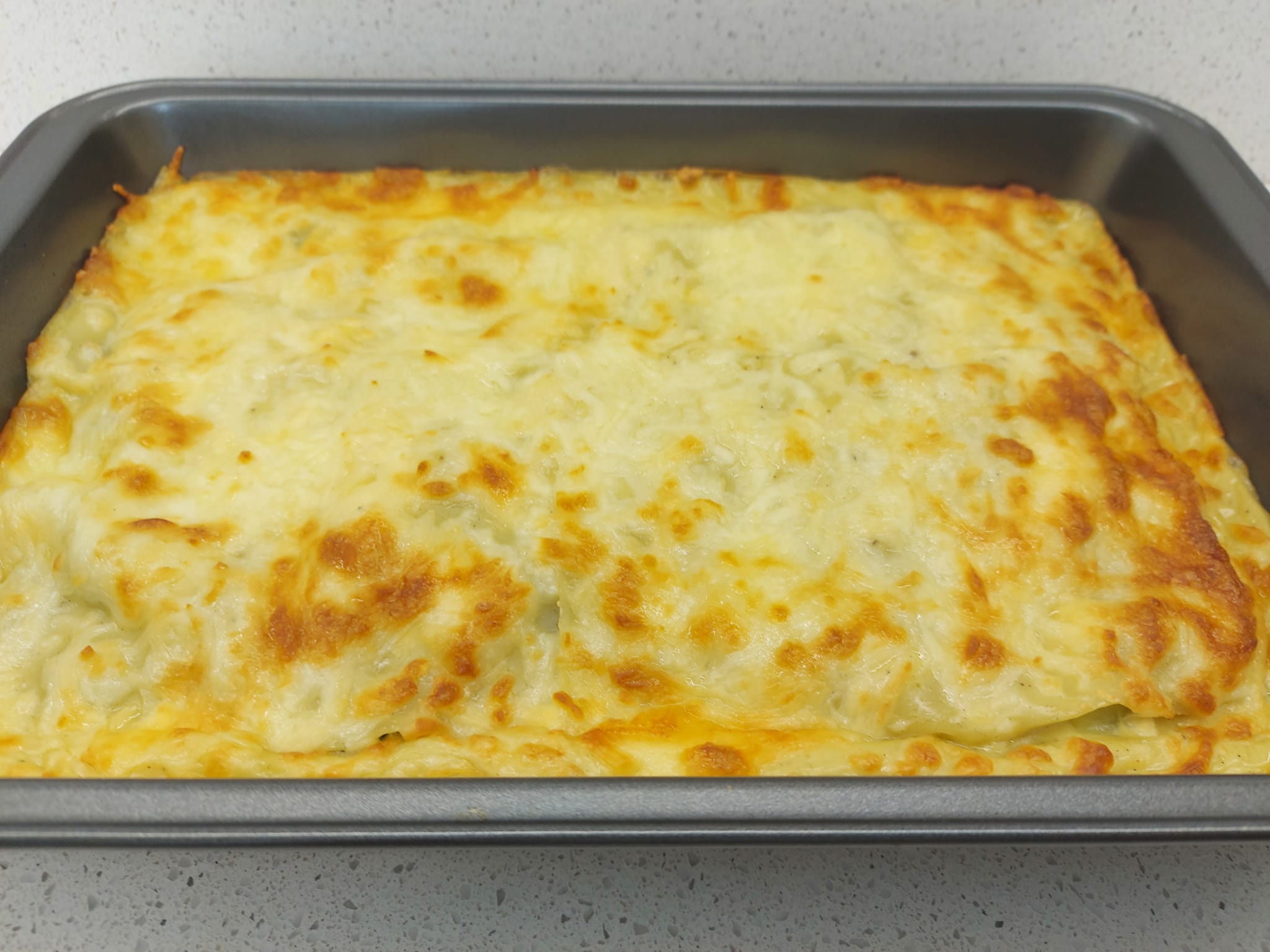 Ponga en el vaso la leche, 300 g del líquido reservado, la maicena, la nuez moscada, la sal y la pimienta. Programe 7 min/100°C/vel 4. Vierta la salsa en la fuente y espolvoree con la mozzarella rallada.