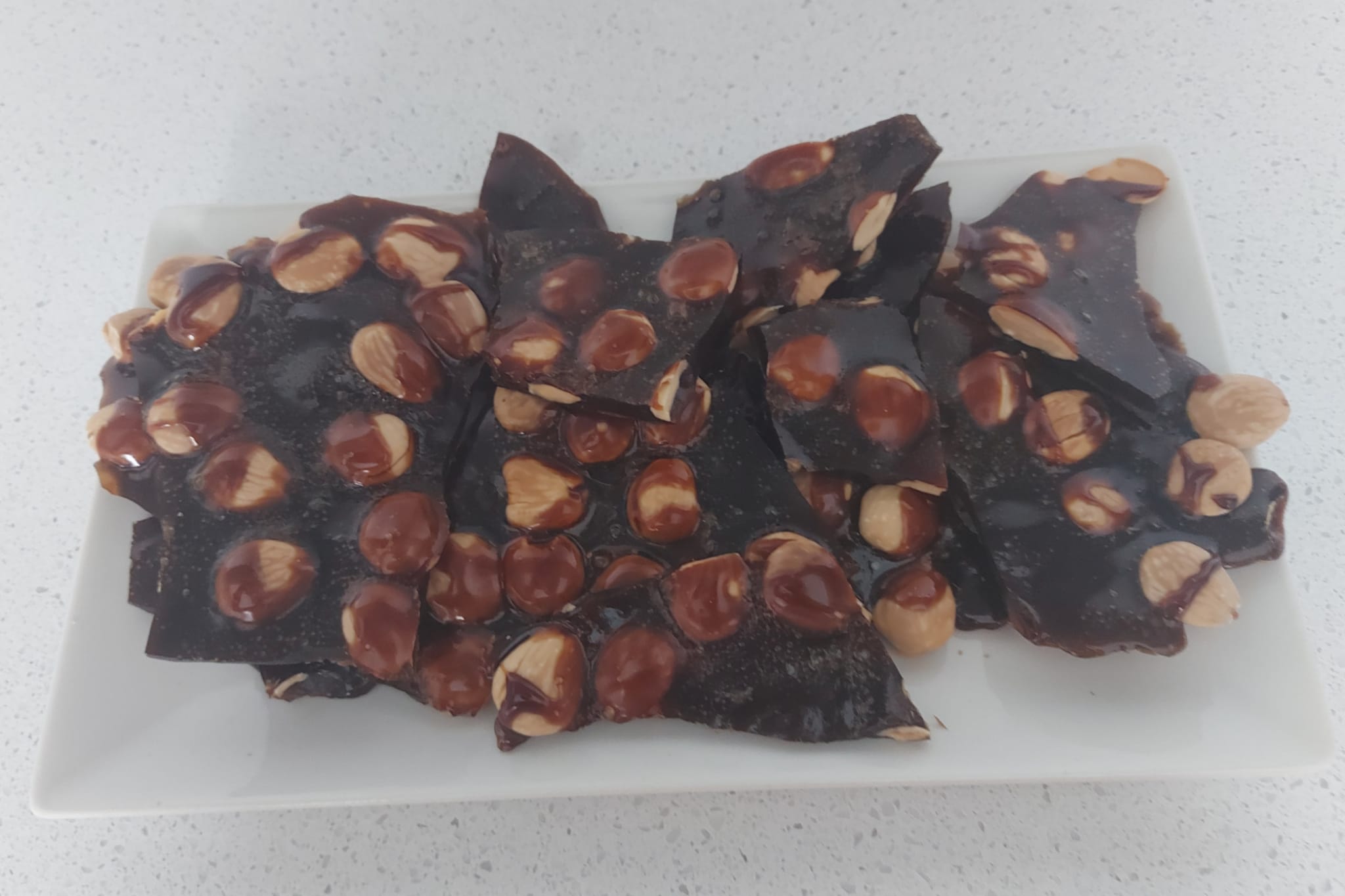 Al terminar verter sobre las almendras, dejar enfriar, romper en trozos y guardar en un recipiente hermético.