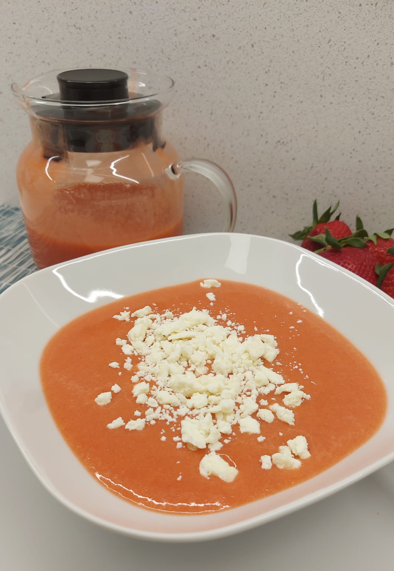 GAZPACHO DE FRESAS CON QUESO DE CABRA EN THERMOMIX