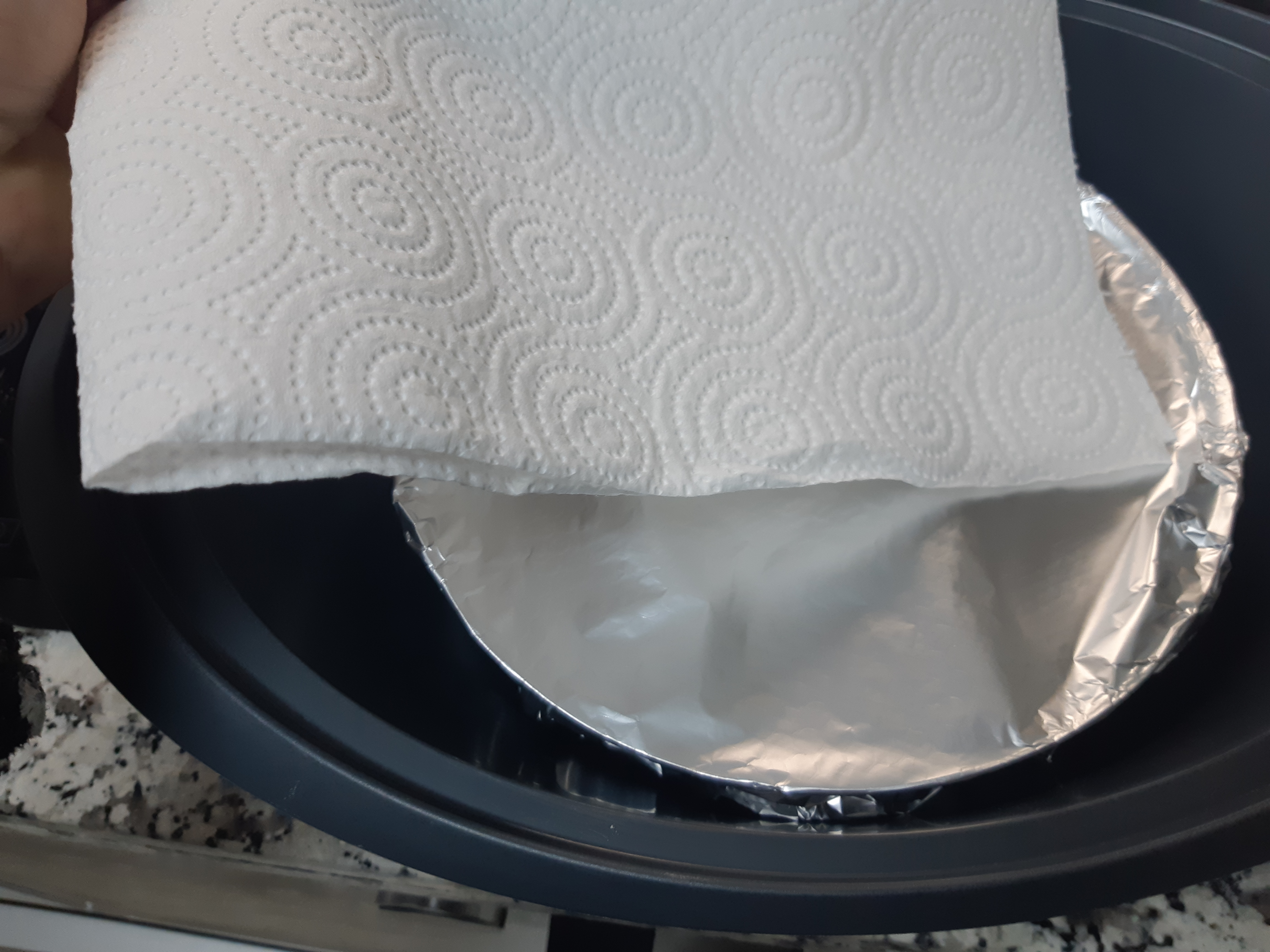 - A continuación caramelizamos un molde que nos quepa en el recipiente Varoma (el de corona de 21cm de thermomix, el redondo con tapa o el alargado son válidos), si aún no los tenéis podéis usar uno alargado de aluminio de usar y tirar que os quepa en el Varoma por ejemplo. Una vez esté caramelizado ponemos el preparado que tenemos en el vaso de la thermomix, lo tapamos con papel de aluminio y lo ponemos en el Varoma, poniendo encima del molde tapado dos papeles de cocina para que absorba el vapor que se genera y tapar con la tapa del Varoma.