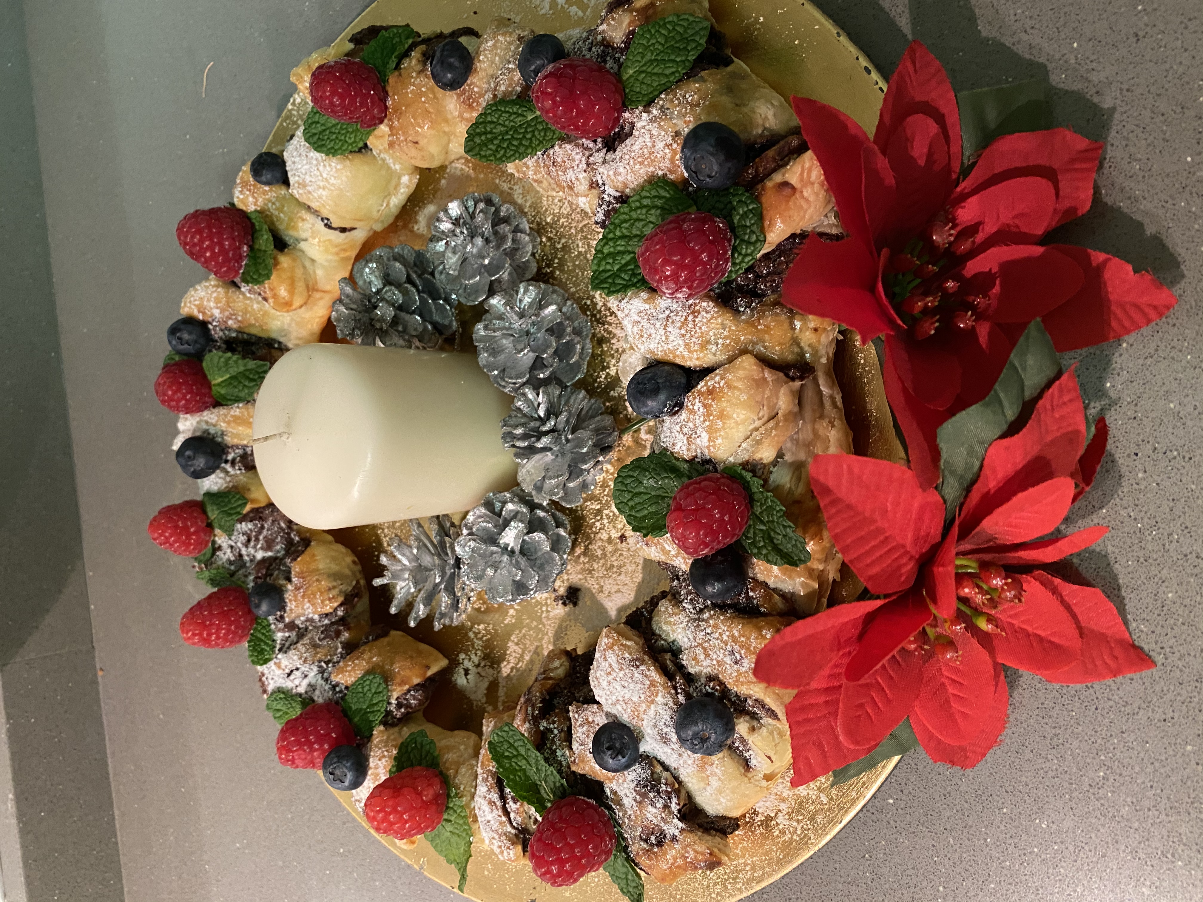 Corona Navideña de hojaldre y chocolate