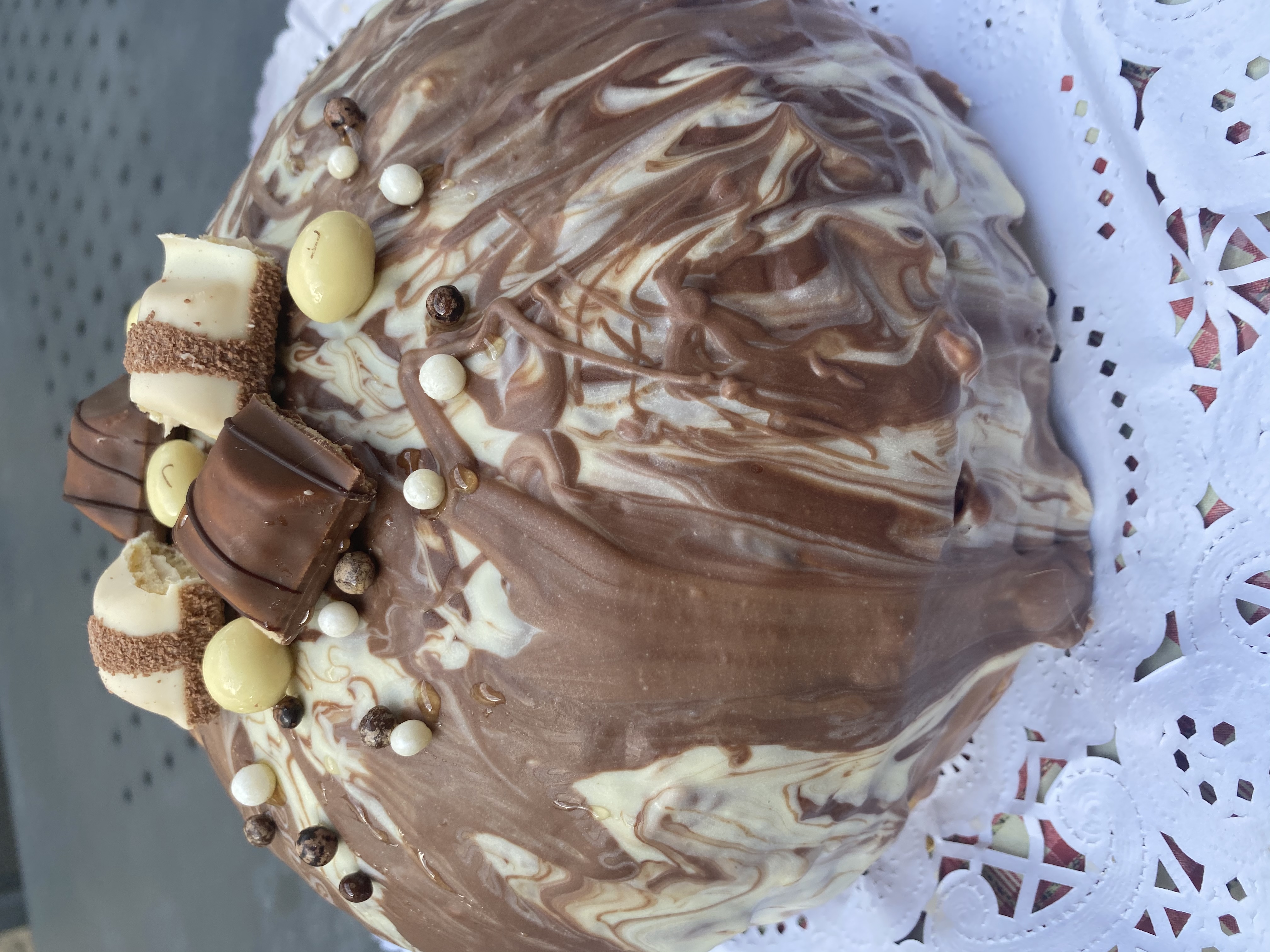 Poner unos cuadrados de kinder Bueno,conguitos y bolitas de chocolate.