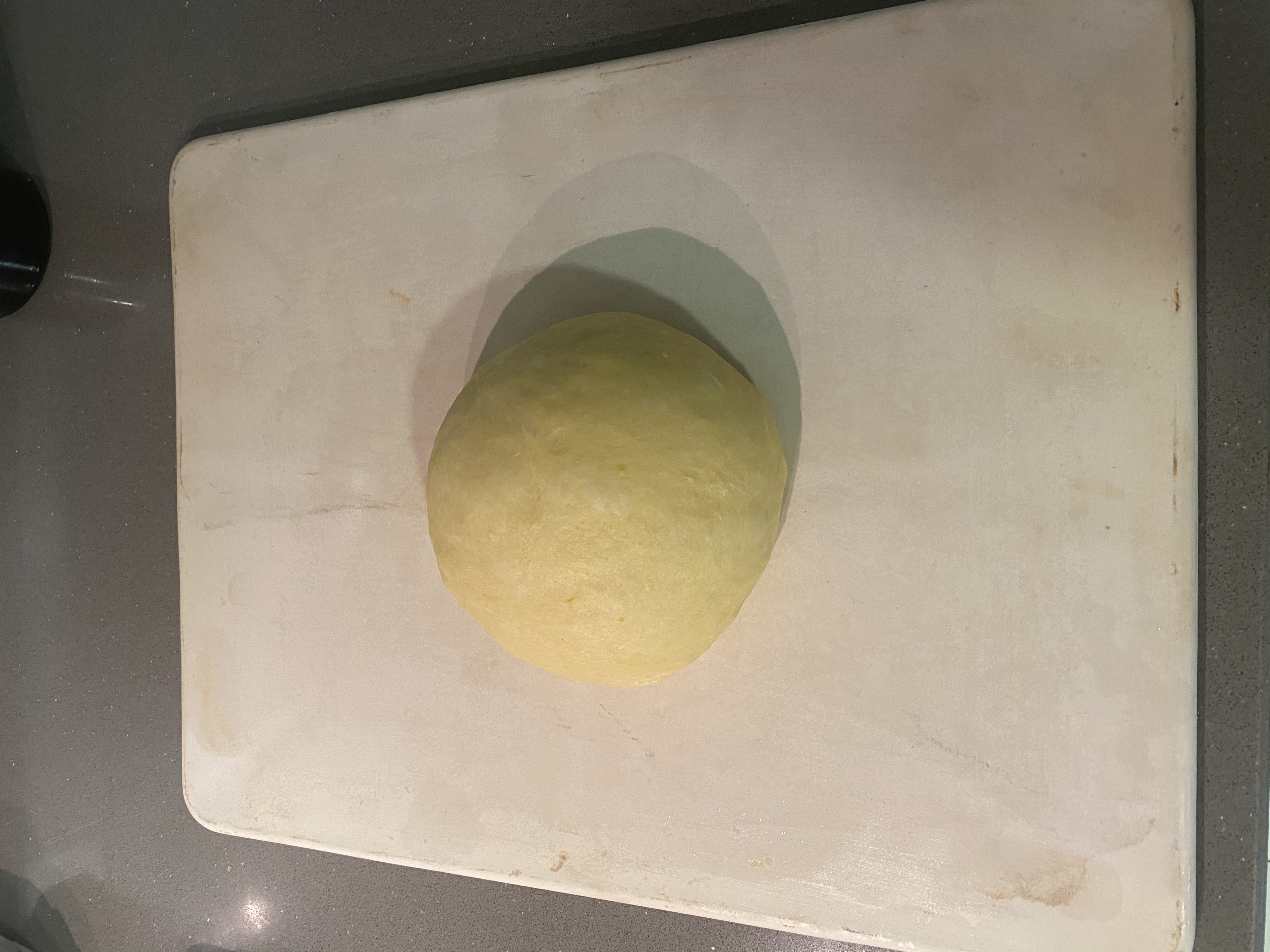 5*Retirar del vaso con las manos untada con un poco de aceite,para que nos sea más fácil de manejar.Dividir en dos o formar una sola más grande. En mi caso hice dos, una de ellas normal con azúcar por encima.