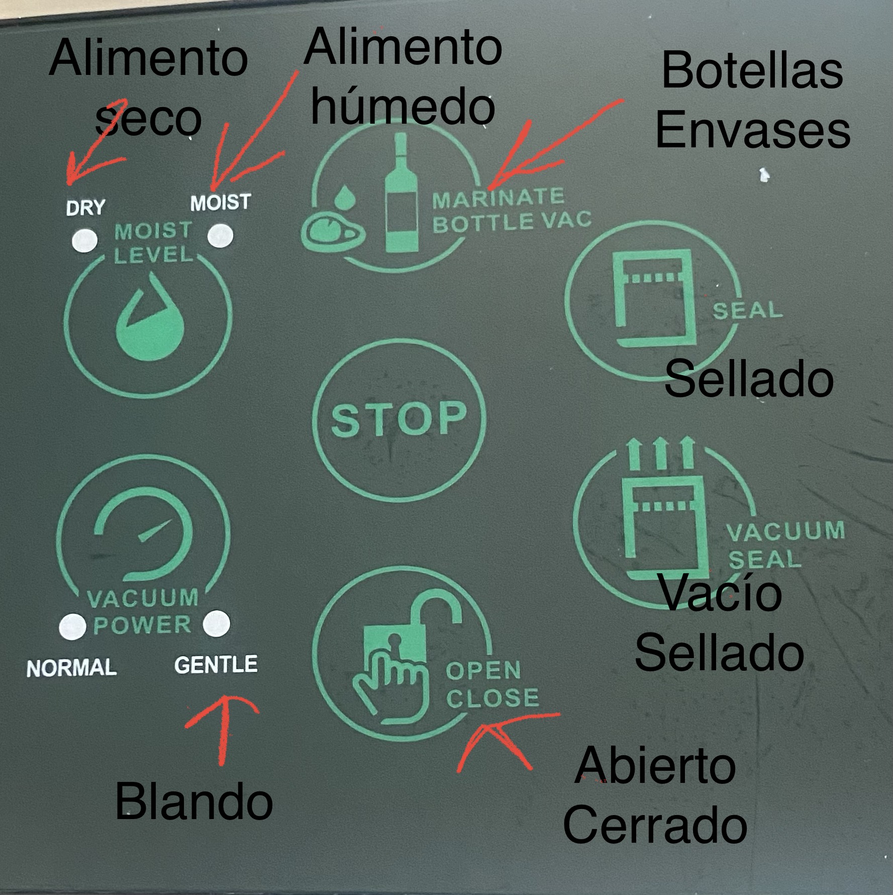 Cuando utilizamos las opciones de sellar o envasar la máquina se cierra automáticamente.