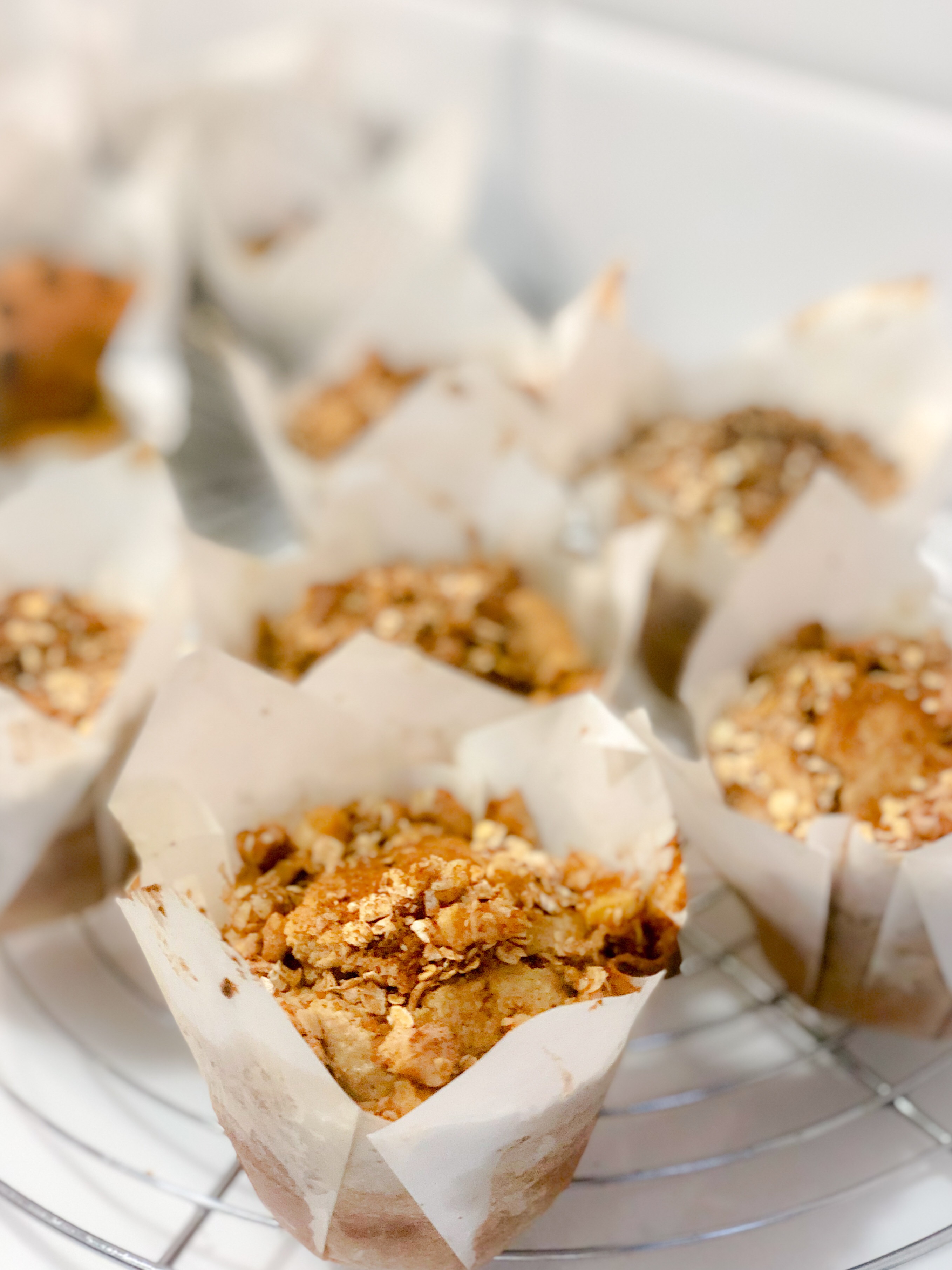 MUFFINS DE AVENA Y MANZANA, con Crumble de avena y nueces.