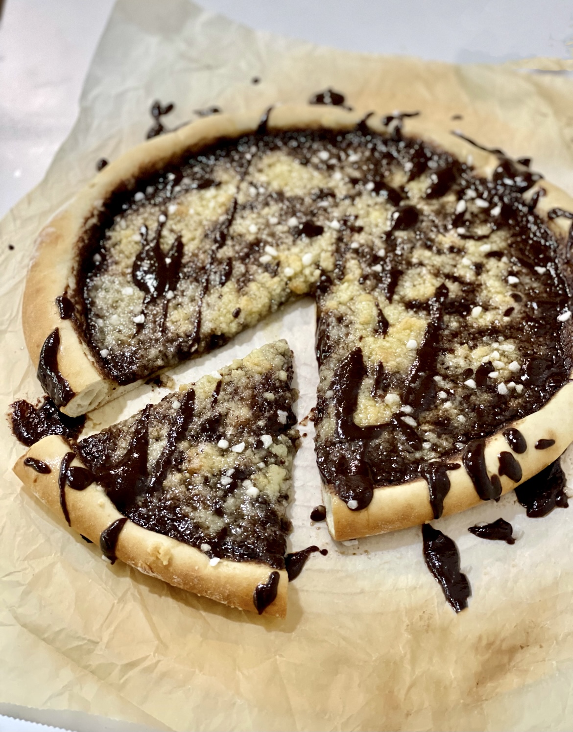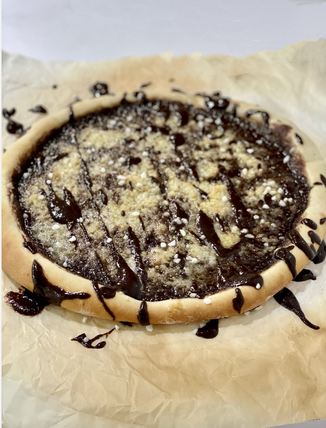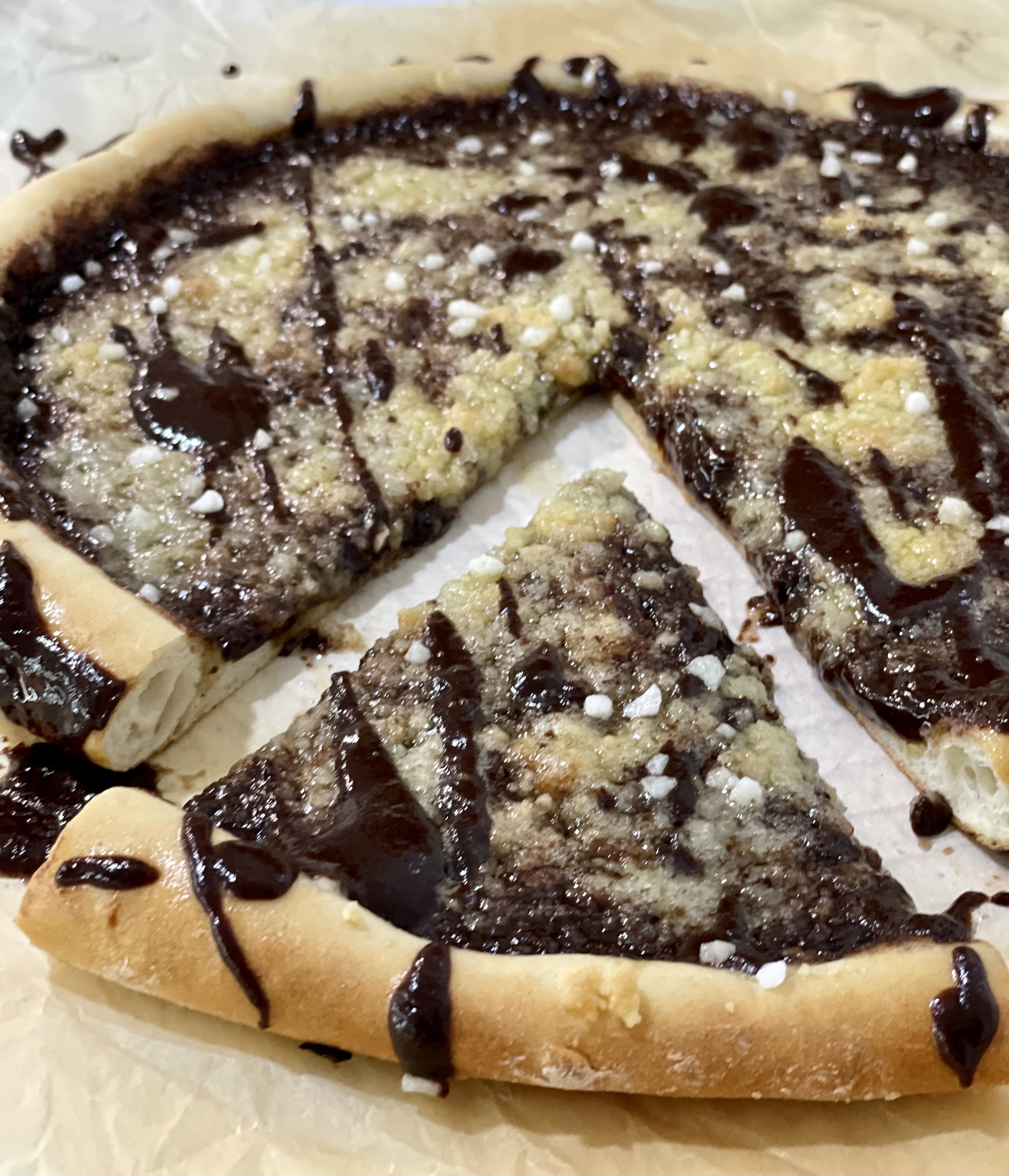 PIZZA DE CREMA DE CHOCOLATE Y STREUSEL