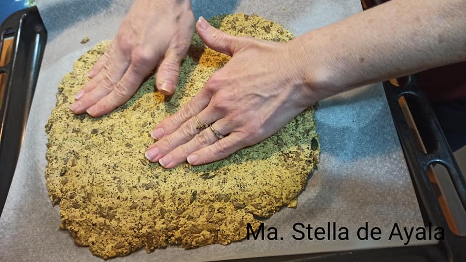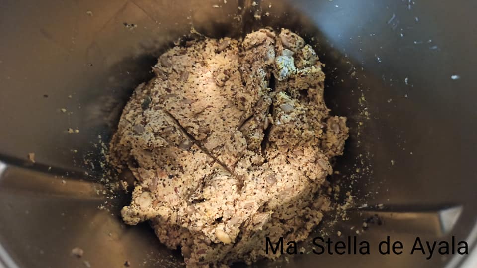 4. Revisa la masa si ya está bien integrada y tiene una textura suave pero firme está perfecta, si no, ajusta los ingredientes añadiendo un poco mas de aceite o mas semillas y amasando nuevamente hasta tener la consistencia deseada, recuerda que esta masa no tiene gluten por lo que no es elástica.