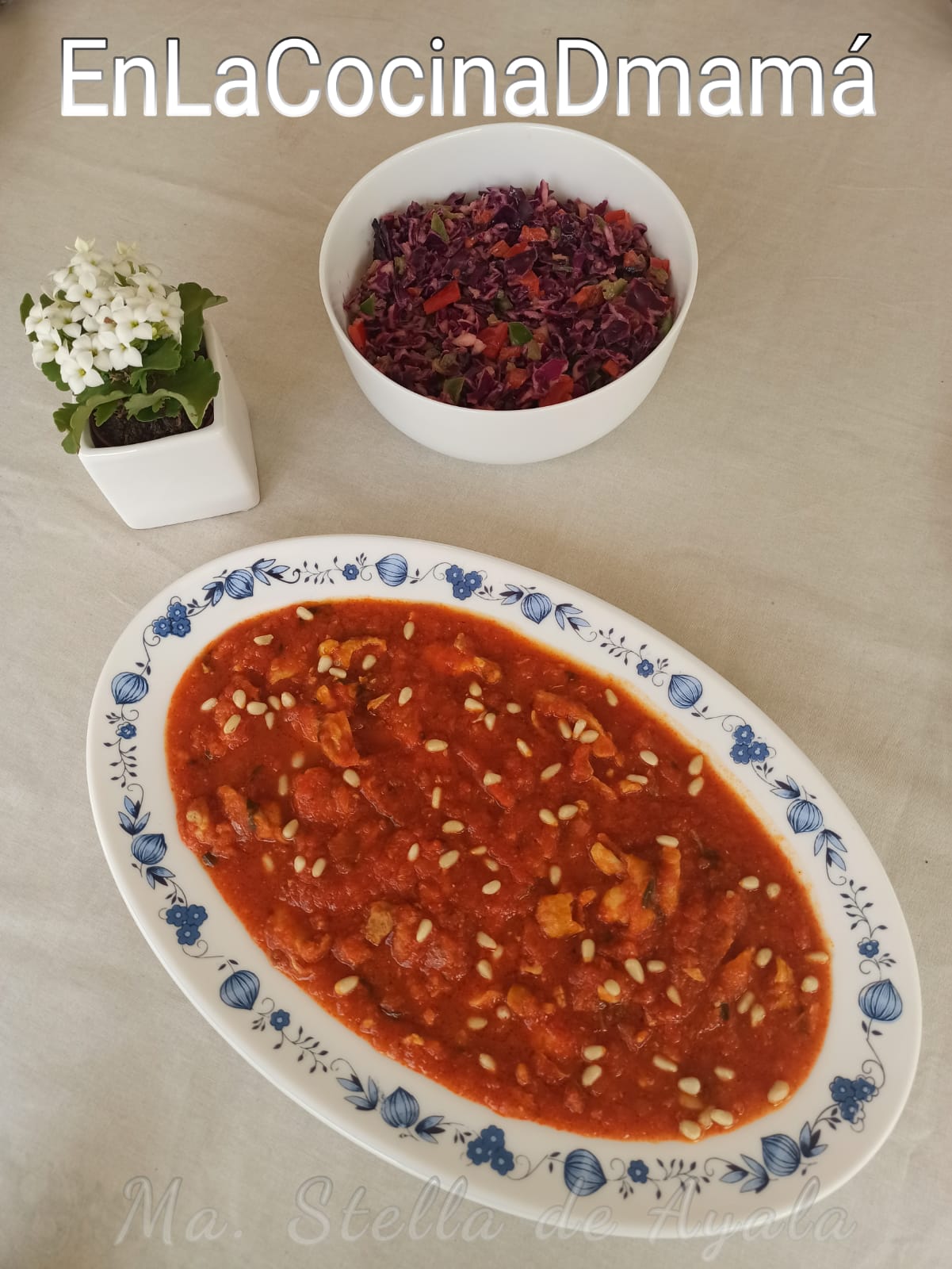 Menú saludable Ensalada de lombarda y Pollo con salsa de tomate