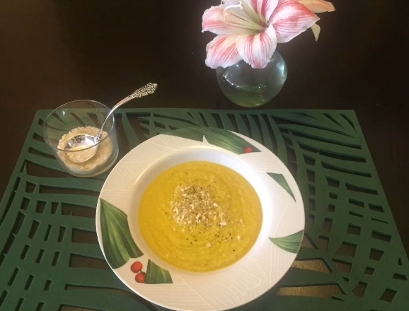 Es muy fácil de preparar y puedes aprovechar para preparar algo más en el recipiente varoma mientras se hace la crema. Recuerda cambiar la temperatura de 100º C a Varoma en ese caso. Puedes añadir también algo más de agua para que la crema tenga una textura más fina.
