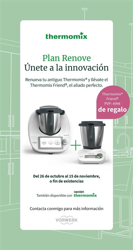 Plan RENOVE: trae tu antiguo Thermomix (cualquier modelo, funcione o no) y llévate de regalo Thermomix® FRIEND GRATIS valorado en 499€ ( VIDEO EXPLICATIVO)