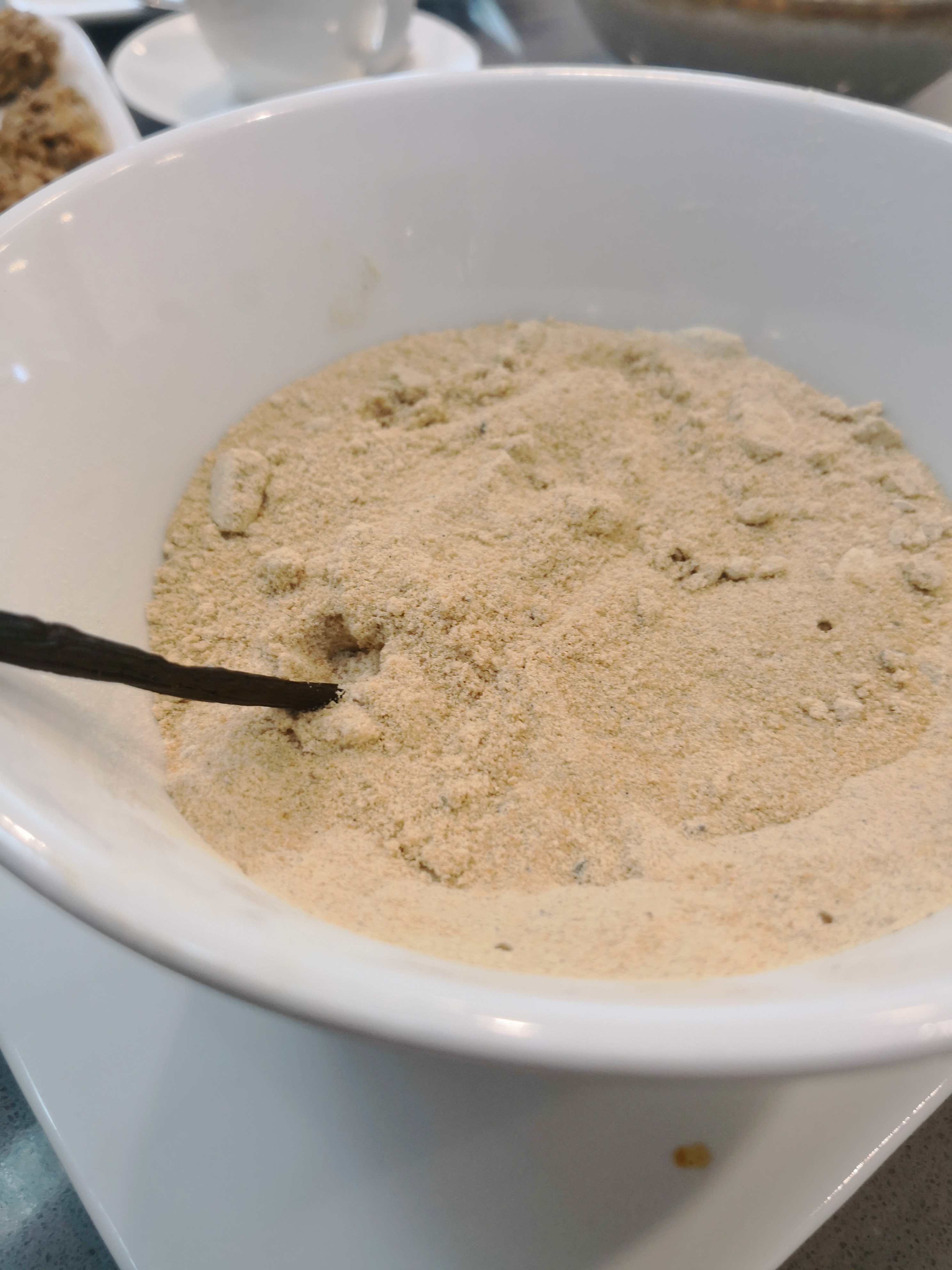 Ponga en el vaso la harina de trigo sarraceno, las almendras y 120 g de pipas de calabaza y muela 40 seg/vel 10.