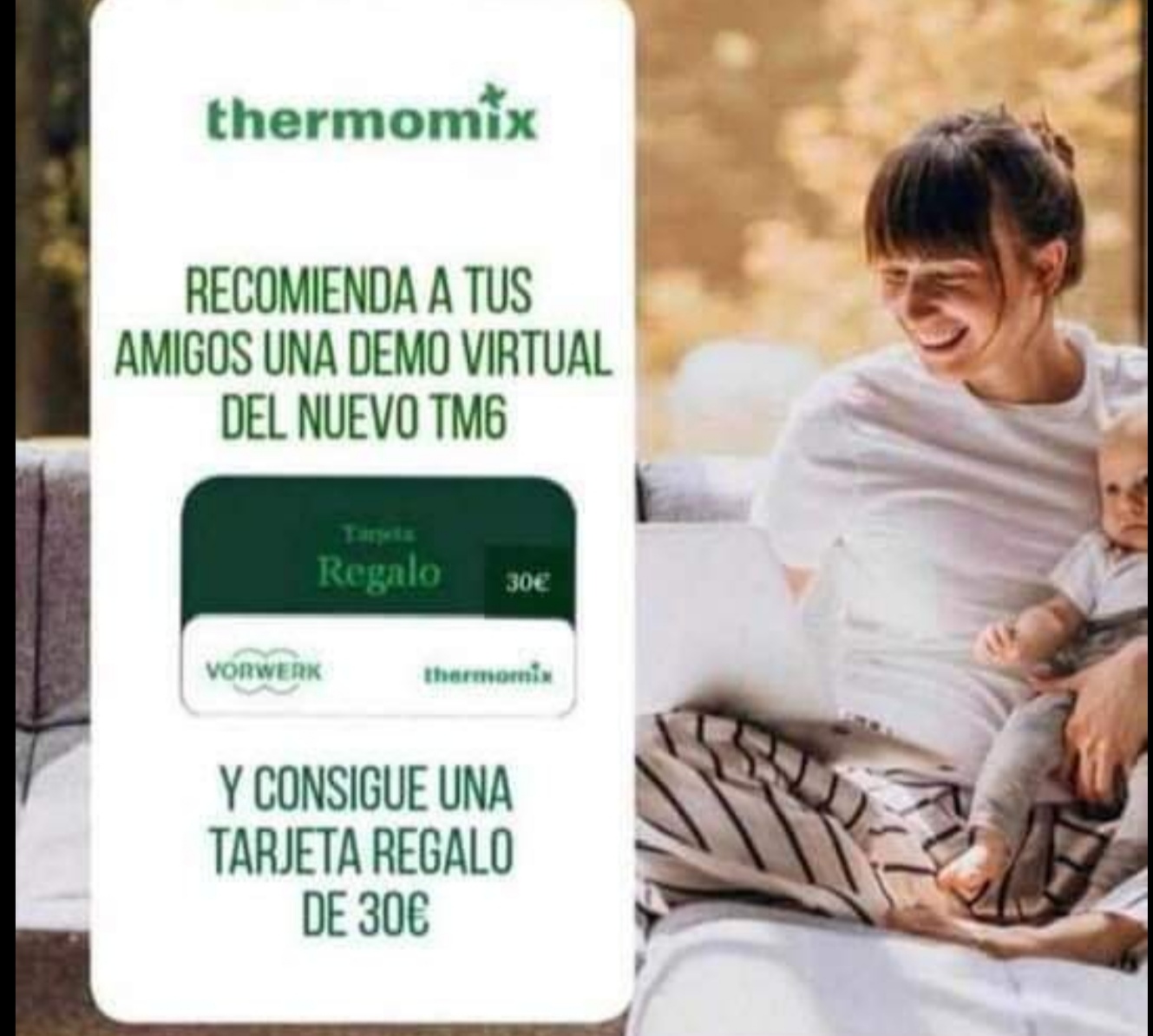 Ya sabes que intentamos mimaros como clientes siempre que podemos, asi que, estoy segura que querras que alguna persona de tu entorno, quiera conocer Thermomix, independientemente que la compre o no, disfrutarás de un cheque regalo de 30 € para ti, y podrás canjearlo en nuestra tienda online.