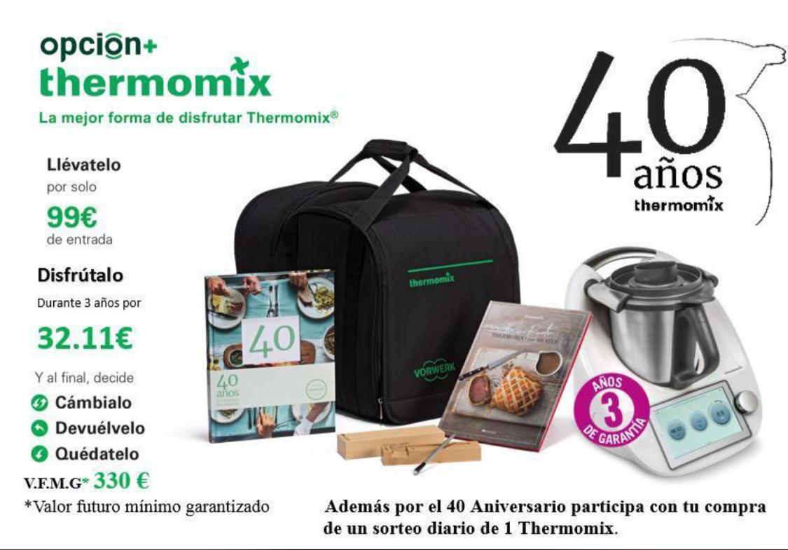 EDICIÓN ANIVERSARIO !!ESTE ES UN AÑO MUY ESPECIAL DONDE THERMOMIX® CUMPLE 40 AÑOS EN ESPAÑA Y QUEREMOS CELEBRARLO A LO GRANDE .... RECIBIRÁS EL NUEVO TM6 CON 3 AÑOS DE GARANTÁA + LOTE DE PRODUCTOS Y ADEMÁS... POR LA COMPRA DE TU THERMOMIX® PARTICIPARÁS EN EL SORTEO DURANTE 40 DÁAS DE UN THERMOMIX® TM6 CADA DÁA, Y PODRÁS GANAR OTRO DESDE 2 DE SEPTIEMBRE HASTA EL 7 DE OCTUBRE ✨✨✨ ¡¡¡UNA OFERTA IRRESISTIBLE!!!,