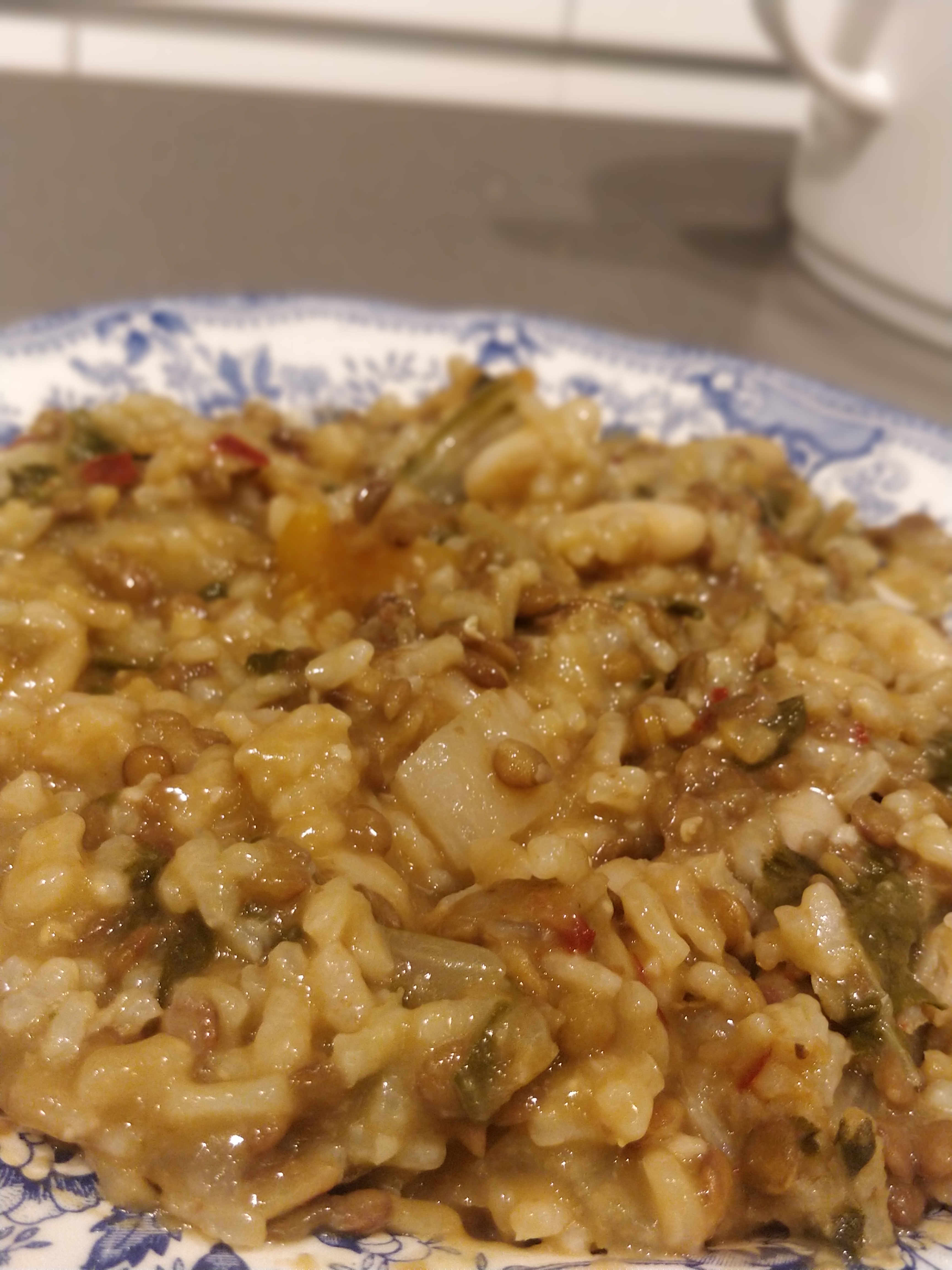 5- Añadir el cardo ,el nabo, las acelgas, la calabaza, las lentejas las alubias el agua y la sal y programamos 20 min. / Varoma / giro inverso / vel. Cuchara .