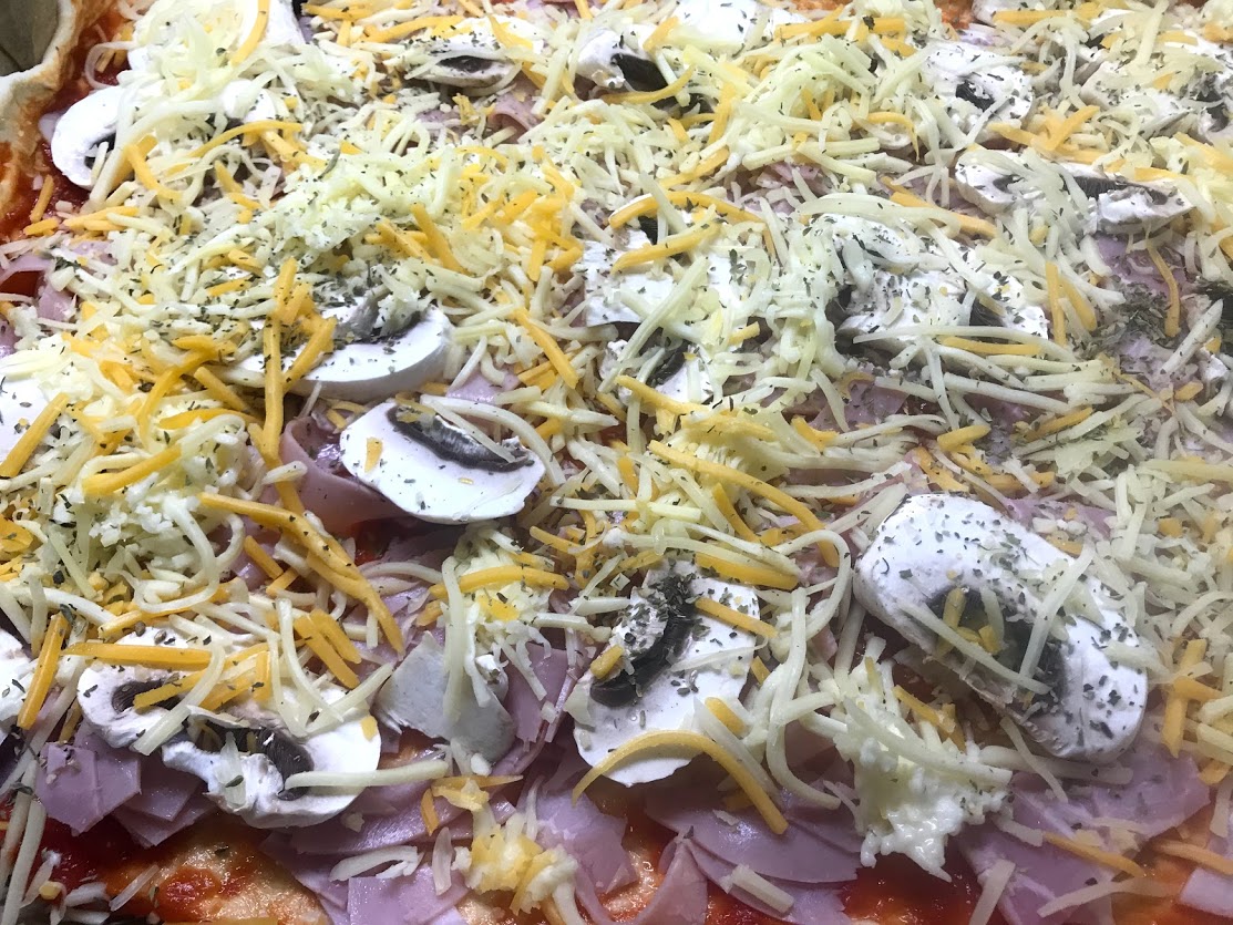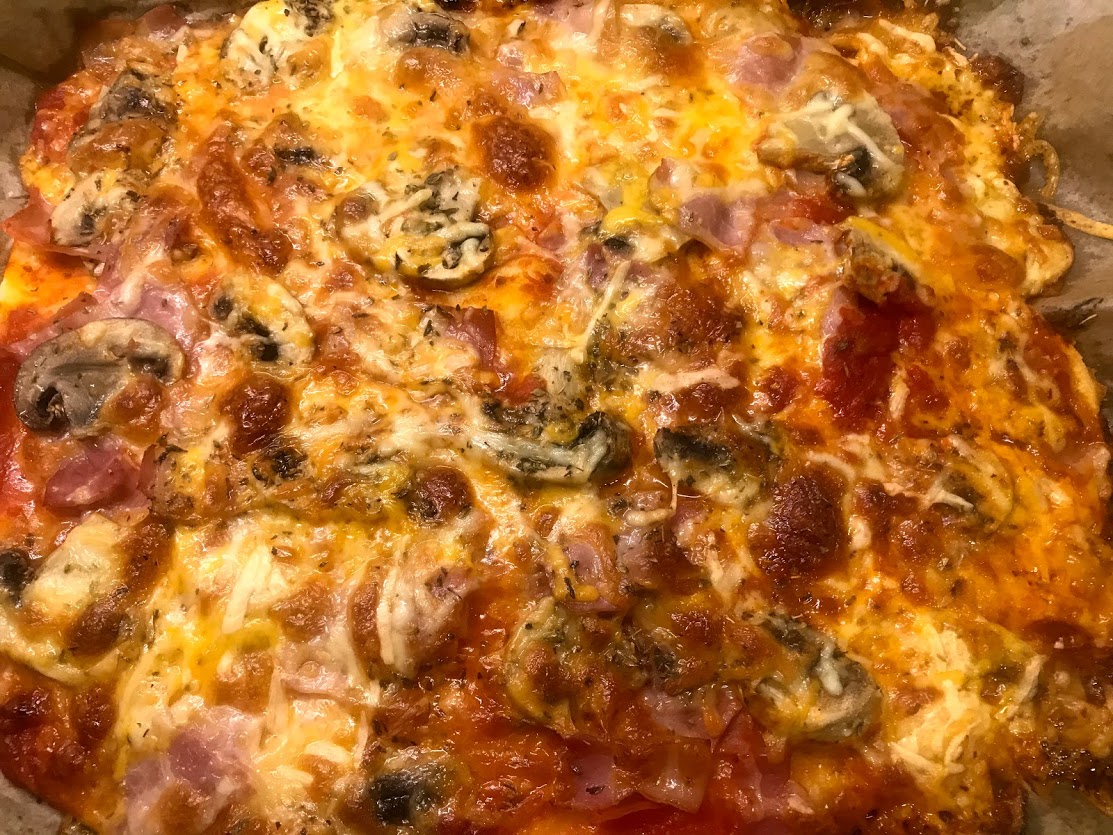 Pizza de jamón y champiñones