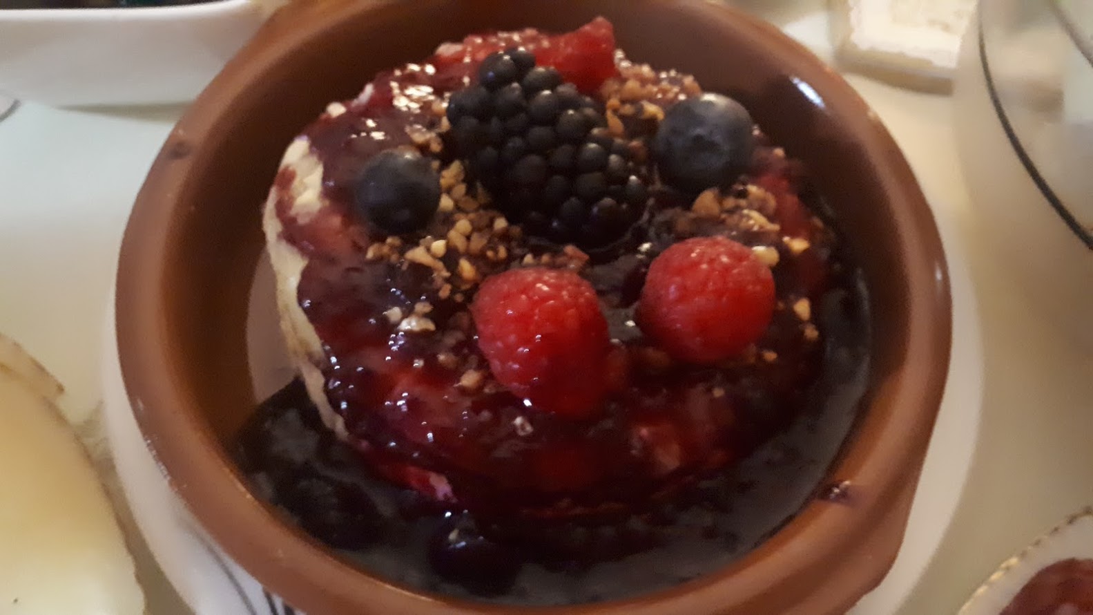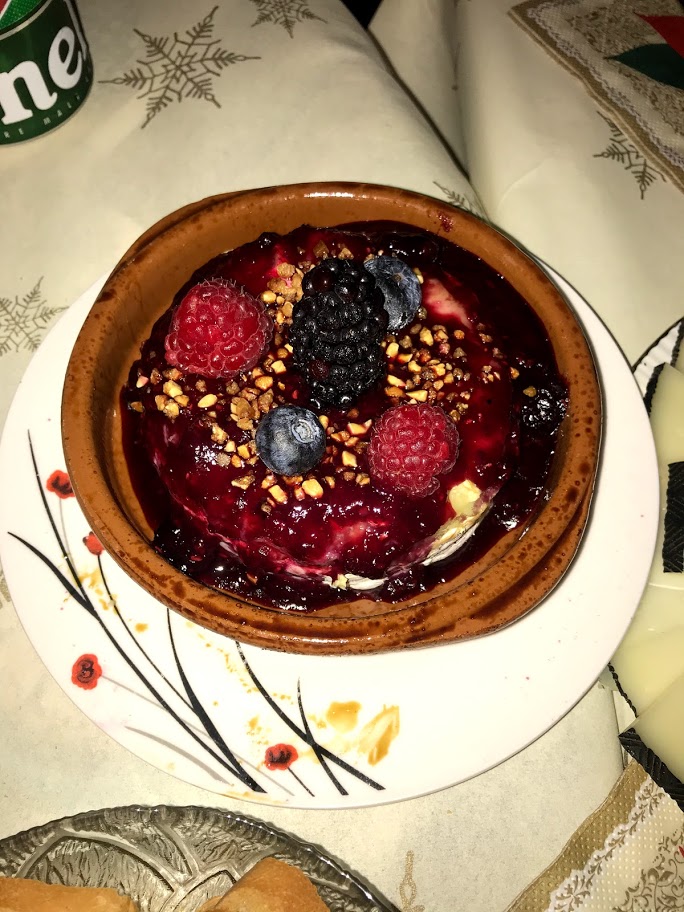 Queso al horno con mermelada de frutos silvestres y chia