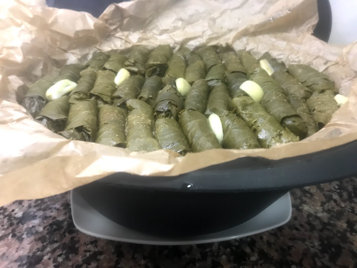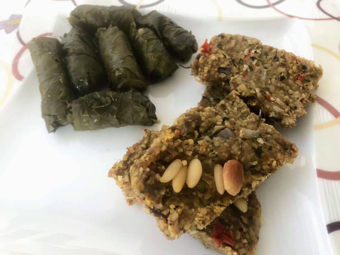 Hojas de parra rellenas y kibbe al horno