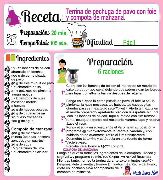 Aquí tenéis escrita la receta de la "Terrina de pechuga de pavo con foie y compota de manzana.