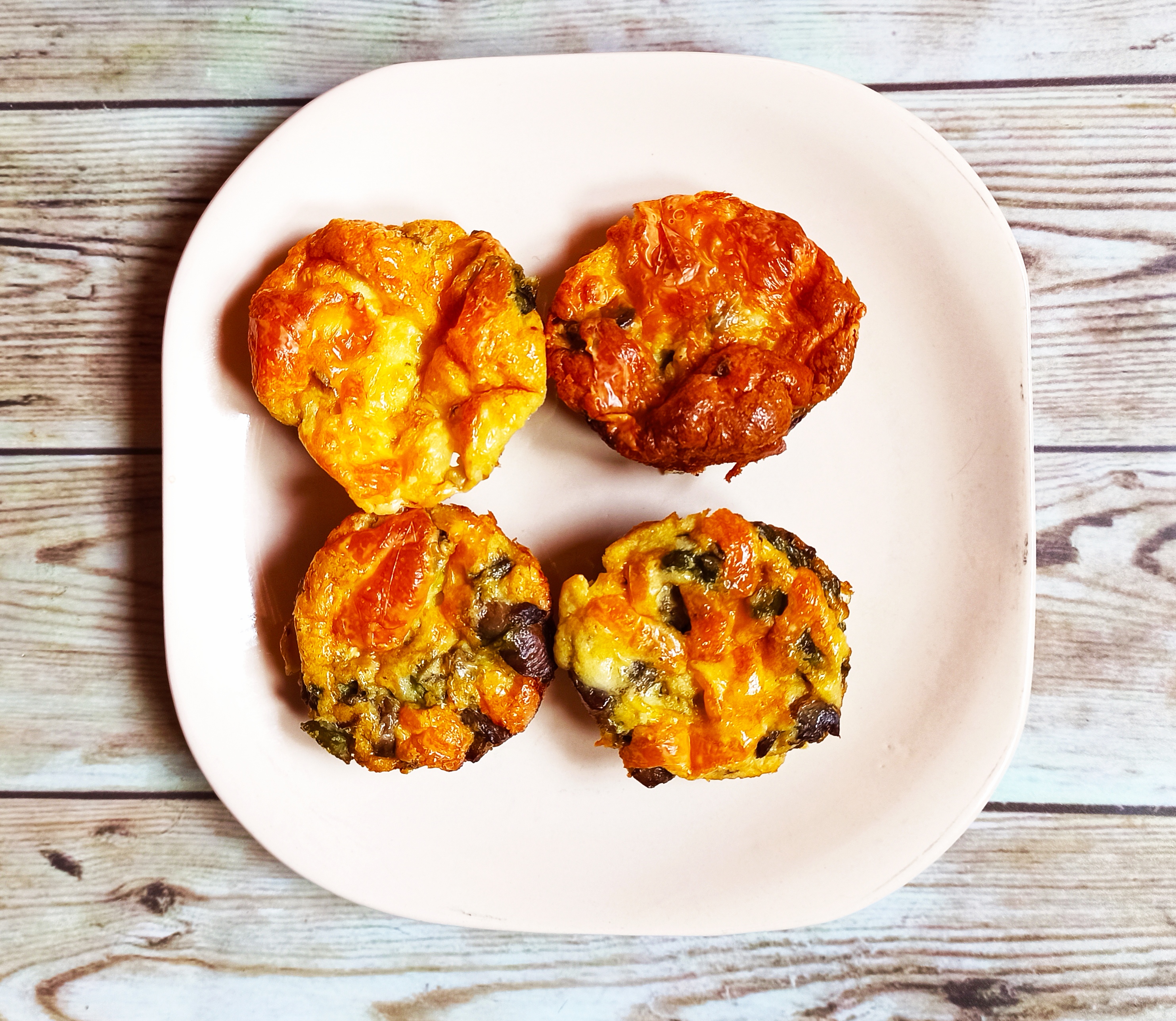 Ponemos en el vaso los huevos, la nata, ½ cucharadita de sal, 1 pellizco de pimienta y 40 g de mozzarella. Mezclamos 15 seg/vel 3. Vertemos el contenido del vaso en los moldes, sobre la verdura, y espolvoreamos con la mozzarella restante.