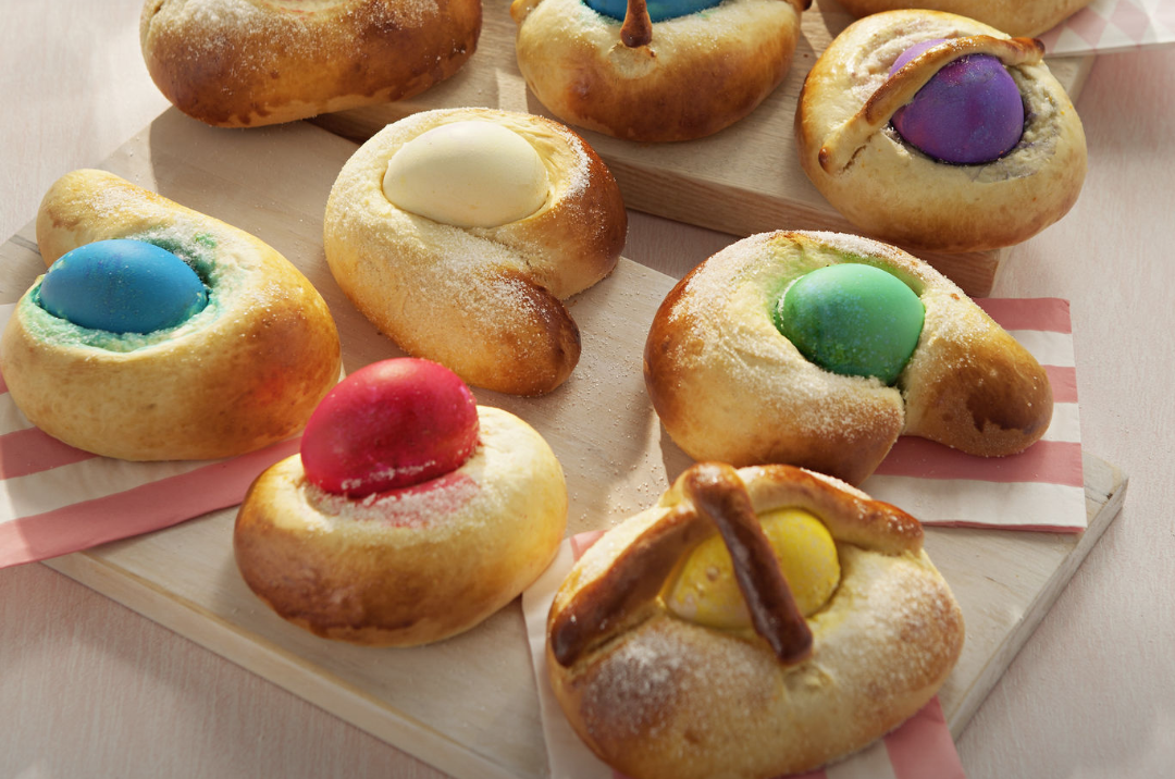 - Untarse las manos de aceite y formar las Monas, colocar en una bandeja de horno con papel vegetal bajo. Pincelar con huevo y dejar reposar hasta que doblen su volumen.