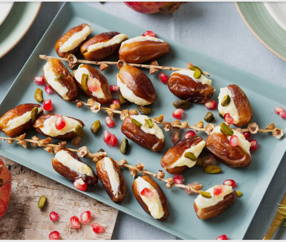 DATILES RELLENOS DE QUESO CON GRANADA Y NARANJA
