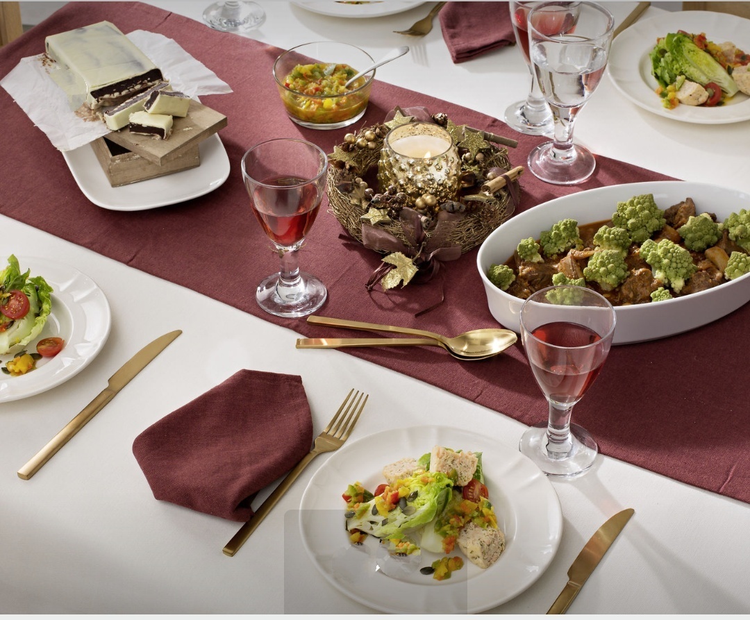 - Servir los cogollos regados con la vinagreta de pimientos primero, las carrilleras con sepia y romanescu de segundo y el turrón de crema de whisky de postre.