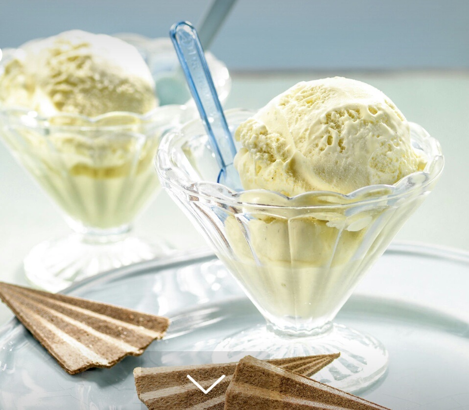- Cuando vaya a consumirlo saque el recipiente y póngalo en el frigorífico 15 minutos, después corte la crema helada en trozos y ponga la mitad en el vaso, triture 20 seg/vel 6, después mezcle 10 seg/ vel 4.