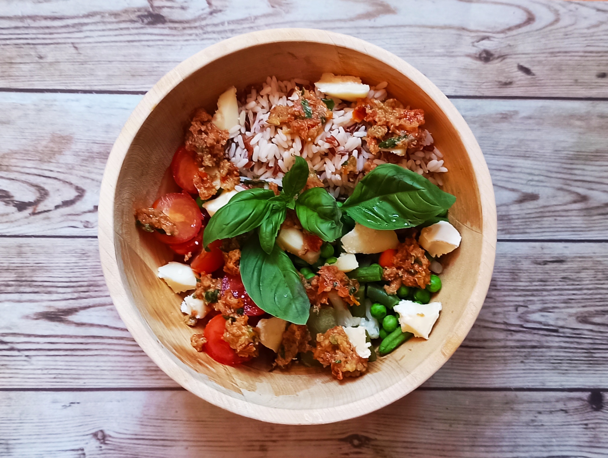 ENSALADA DE ARROZ CON ALIÑO DE PESTO ROJO