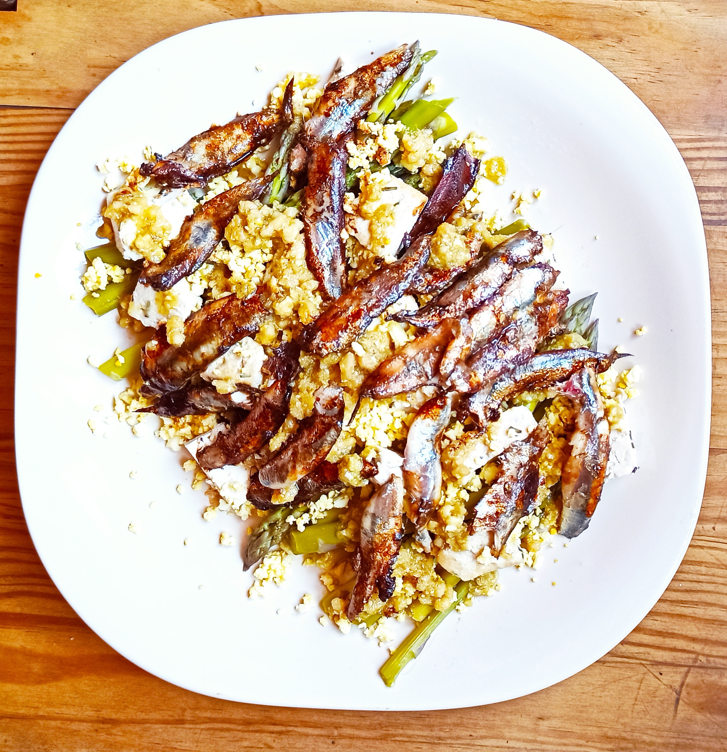 ENSALADA DE ESPÁRRAGOS. BOQUERONES Y TOFU O QUESO FRESCO