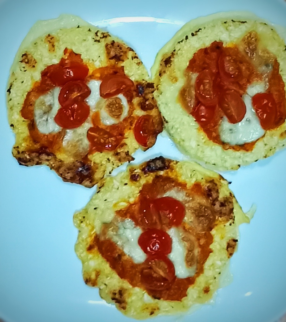 Poner en el vaso la coliflor, el queso y los huevos. Introducir la espátula por la abertura y trocear 9 seg/vel 5 moviendo la espátula de lado a lado para ayudar en el troceado. Con un aro de repostería de aprox. Ø 10 cm, formamos 6 medallones de masa en cada bandeja.