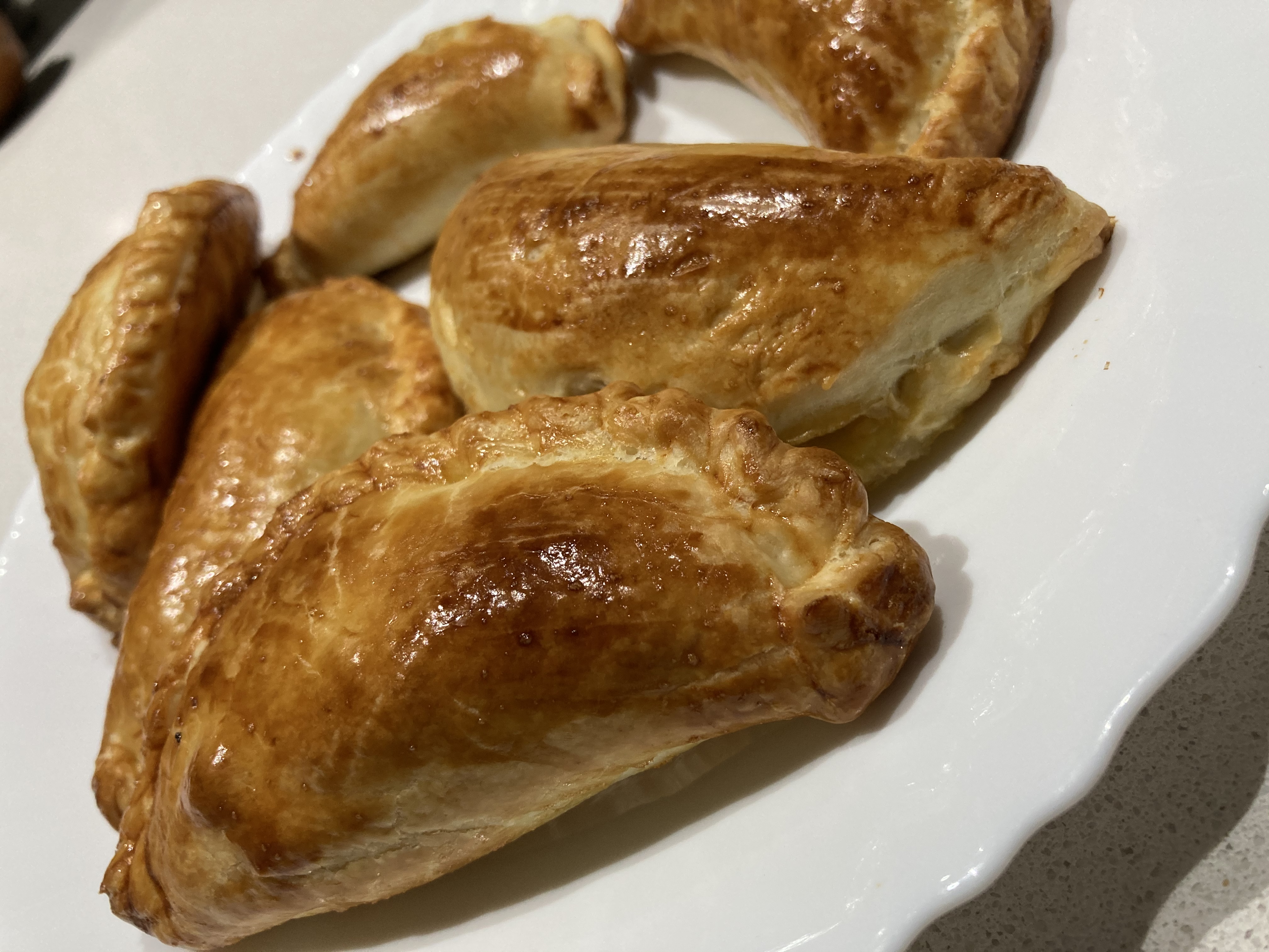 Coloque las empanadillas en la bandeja reservada y hornee durante 10-12 minutos (200°C). Retire del horno, deje templar unos minutos y sirva.