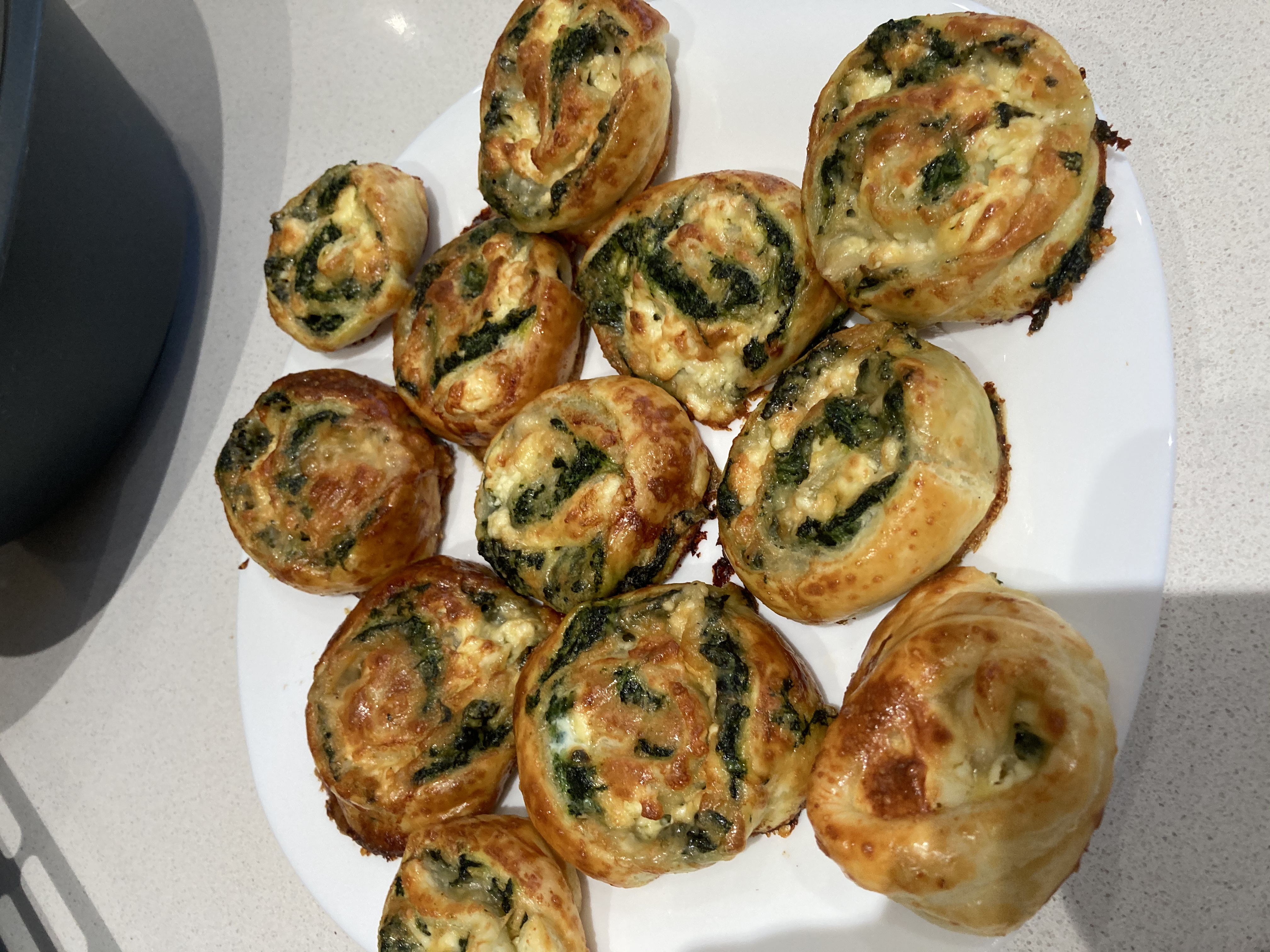 ESPIRALES DE HOJALDRE CON ESPINACAS Y QUESO FETA