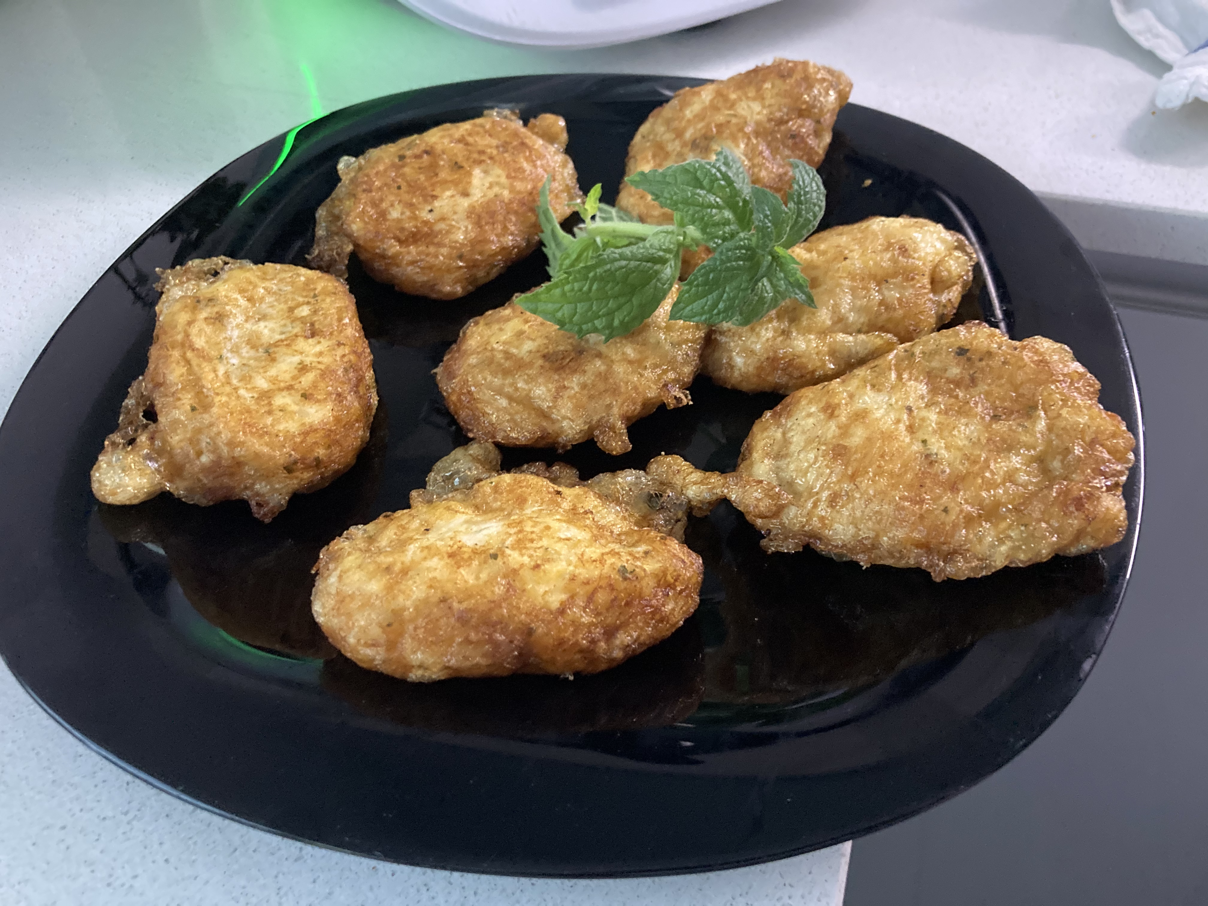 Caliente el aceite en una sartén honda. Con ayuda de dos cucharas, forme con la pasta quenelles, rebócelas en las claras de huevo ligeramente batidas y fríalas en tandas a fuego fuerte. Colóquelas sobre papel de cocina. Sirva inmediatamente.