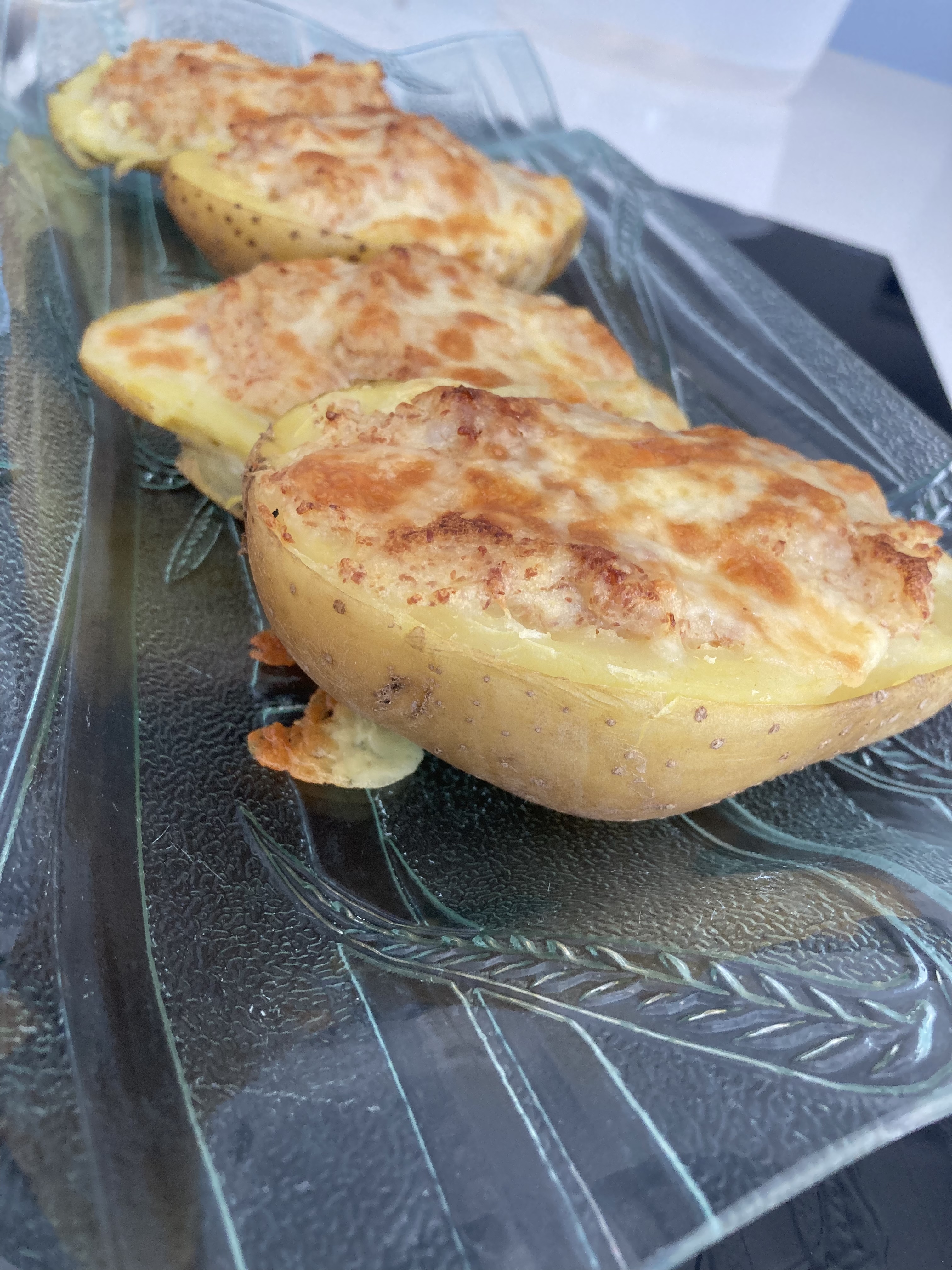 PATATAS RELLENAS DE JAMÓN Y GAMBAS